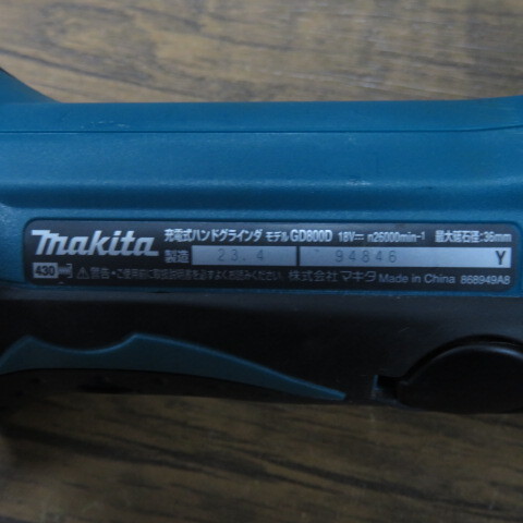 makitaマキタ 18V 充電式ハンドグラインダ GD800D 本体のみ 2023年製造