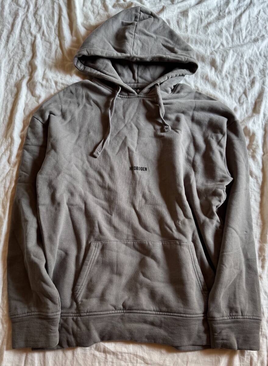HYDROGEN ハイドロゲン プリントスウェットパーカー グレー S ロゴ シンプル