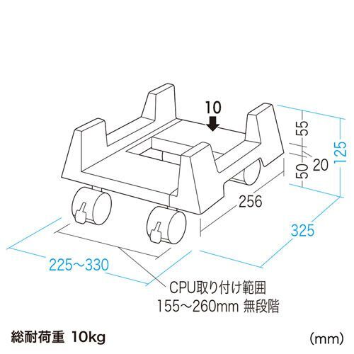 ※配送の送り主はサンワサプライ(株)と記載されています。沖縄・離島配送不可となります。 当店は正規販売代理店です。 特長 幅155mm~260mmの本体に合わせることができます。 キャスター付きでメンテナンスが容易です。 組立が簡単です。 <こんなときに役立ちます> ※デスク下への収納をするとき。 ※背面部のメンテナンスを頻繁に行う場合。 ※移動をすることがある場合。 <ご注意> ※キャスターは長距離の移動を想定したものではありません。 気をつけておりますが、タイミングによっては在庫切れの場合があります。 仕様