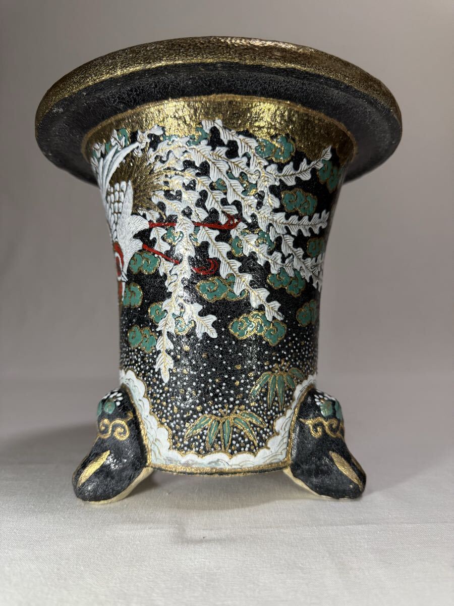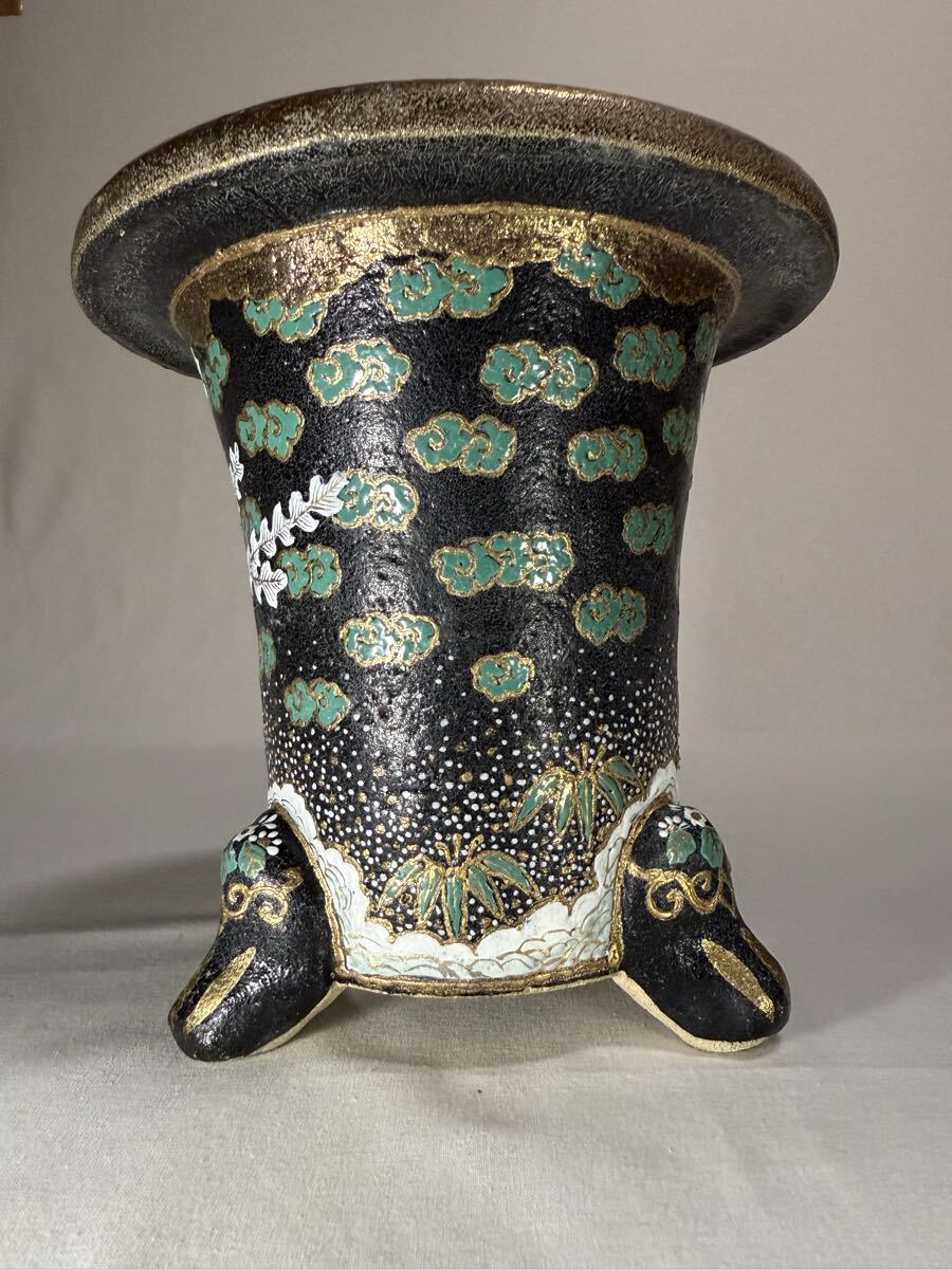 布施覚絵付けの万年青鉢です。大きさは約上22センチ、底10、8センチ、高さ19、6センチです。足の裏側が少し削れています。古い物ですので埃や汚れ等付着しております。コロナウイルス感染予防の為、マスクの着用と手指の消毒を徹底しております。商品の状態を写真で良くご確認の上入札して頂きます様宜しくお願い致します。ヤマト運輸おてがる配送宅急便で送らせて頂きます。楽焼鉢は割れやすいので破損防止の為、大きめの箱に梱包して送らせて頂きます。ノークレーム、ノーリターンで宜しくお願い致します。落札後、72時間以内にご連絡を頂けない場合はキャンセルとさせて頂きますので御了承の程宜しくお願い申し上げます。大変申し訳御座いませんがあまりにも値段が安い場合にはオークションの取り消しをさせて頂くことがありますので御了承下さい。