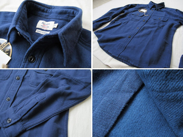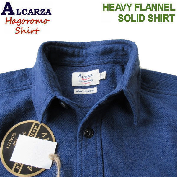 ALCARZA【ヘビーフランネルソリッドシャツ】羽衣シャツ/ネルシャツ・ワークシャツ 627-00 27)ネイビー Lサイズ