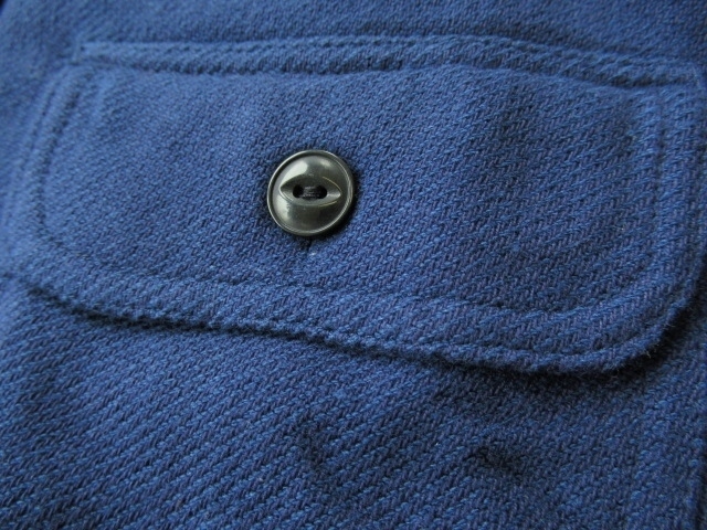 ビンテージ感漂うネコ目ボタンや、補強を兼ねた二重構造のエルボーパッチなどこだわりのディテール!