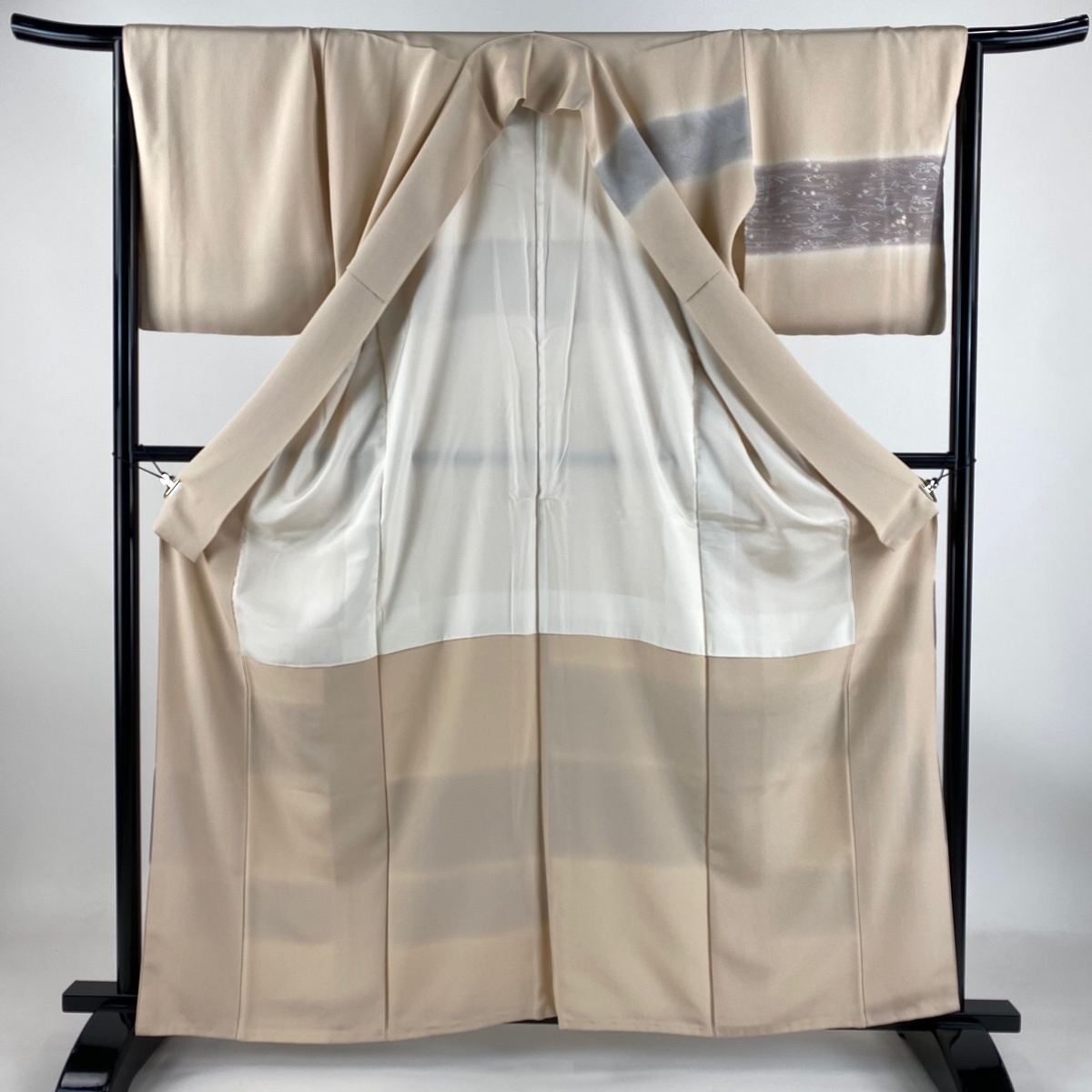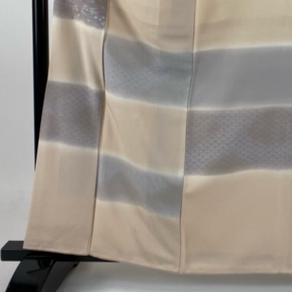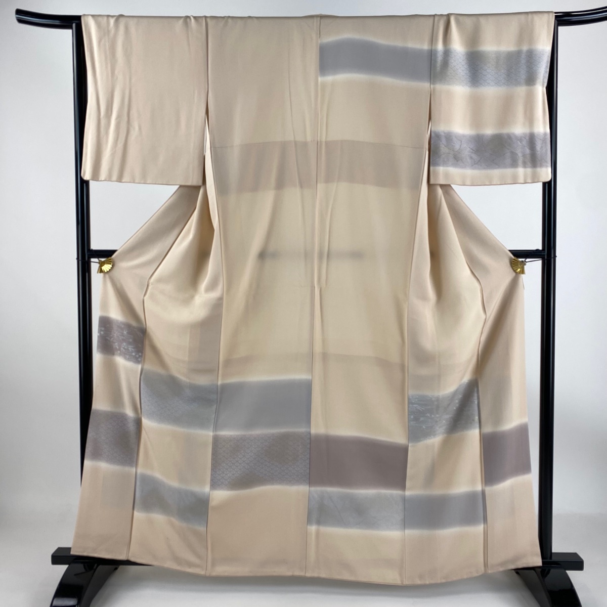 | 訪問着 秀品 段縞 若松菱 金銀彩 薄オレンジ 袷 身丈161 裄丈66 M 正絹 【中古】 |