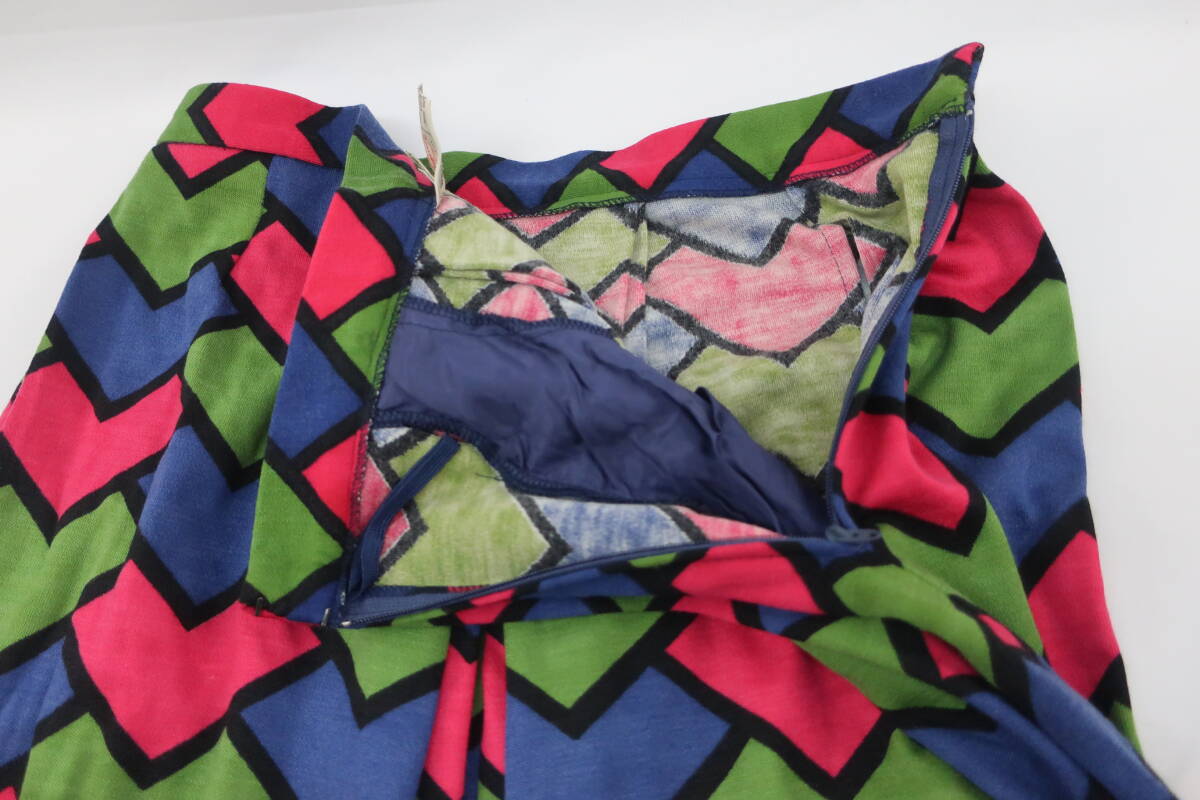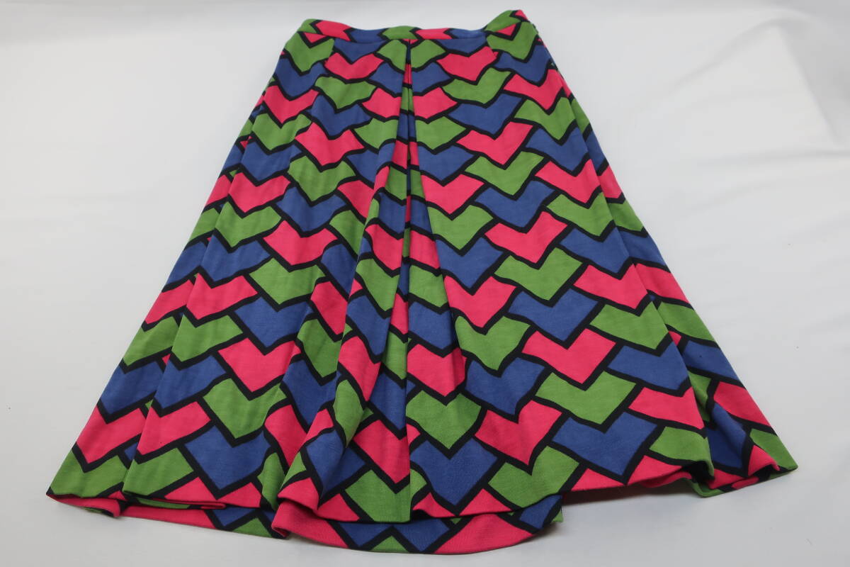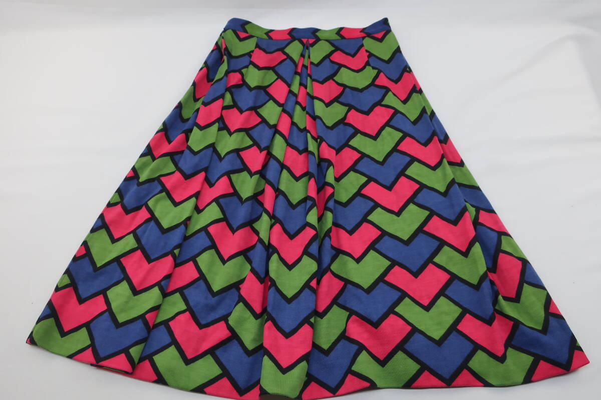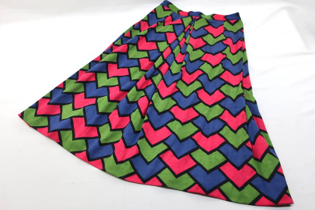 【送900円】1271 最終 Roberta di Camerino  ロベルタディカメリーノ タックフレアスカート ミモレ丈 イタリア製 ウール100% マルチ 10
