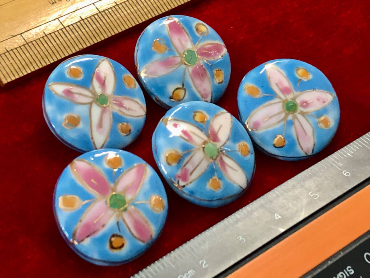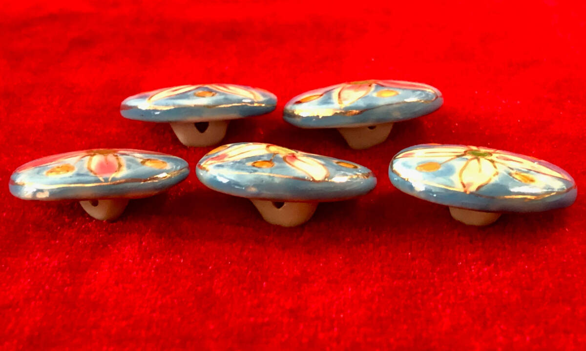 水色釉に 彩磁金粉縁取りの米型花模様大玉実用ボタン