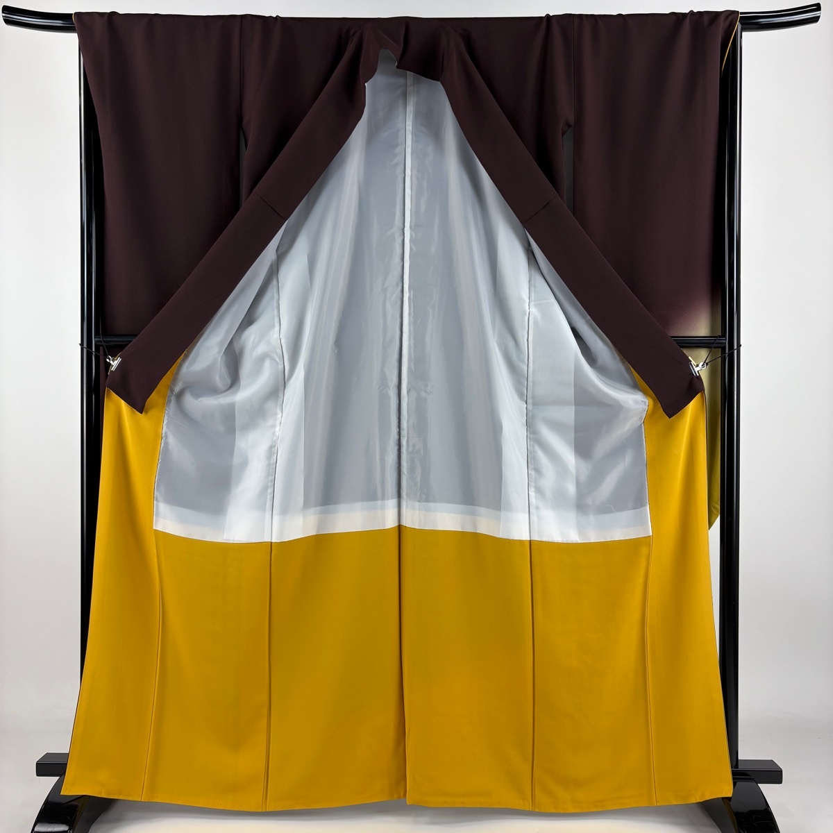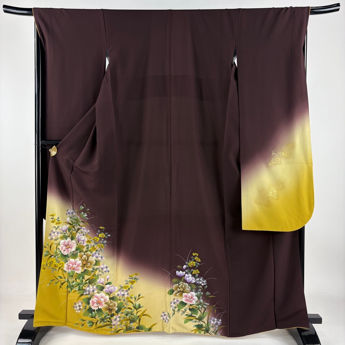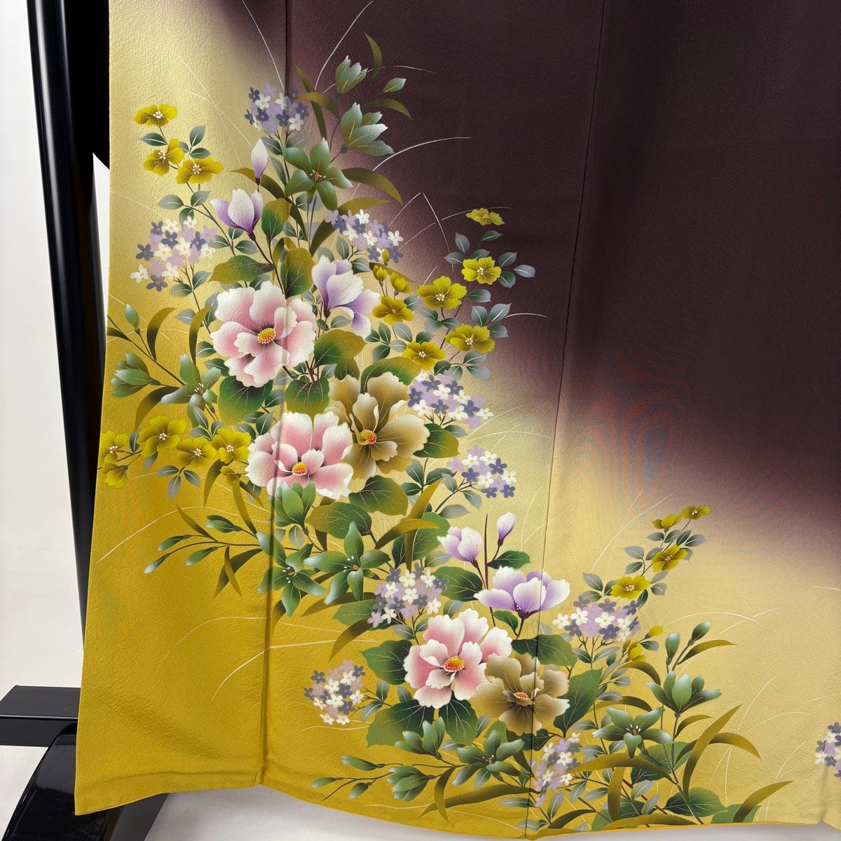 振袖 美品 秀品 袋帯フルセット 草花 ぼかし 金彩 茶紫 袷 身丈165 裄丈68 L 正絹 【中古】 |