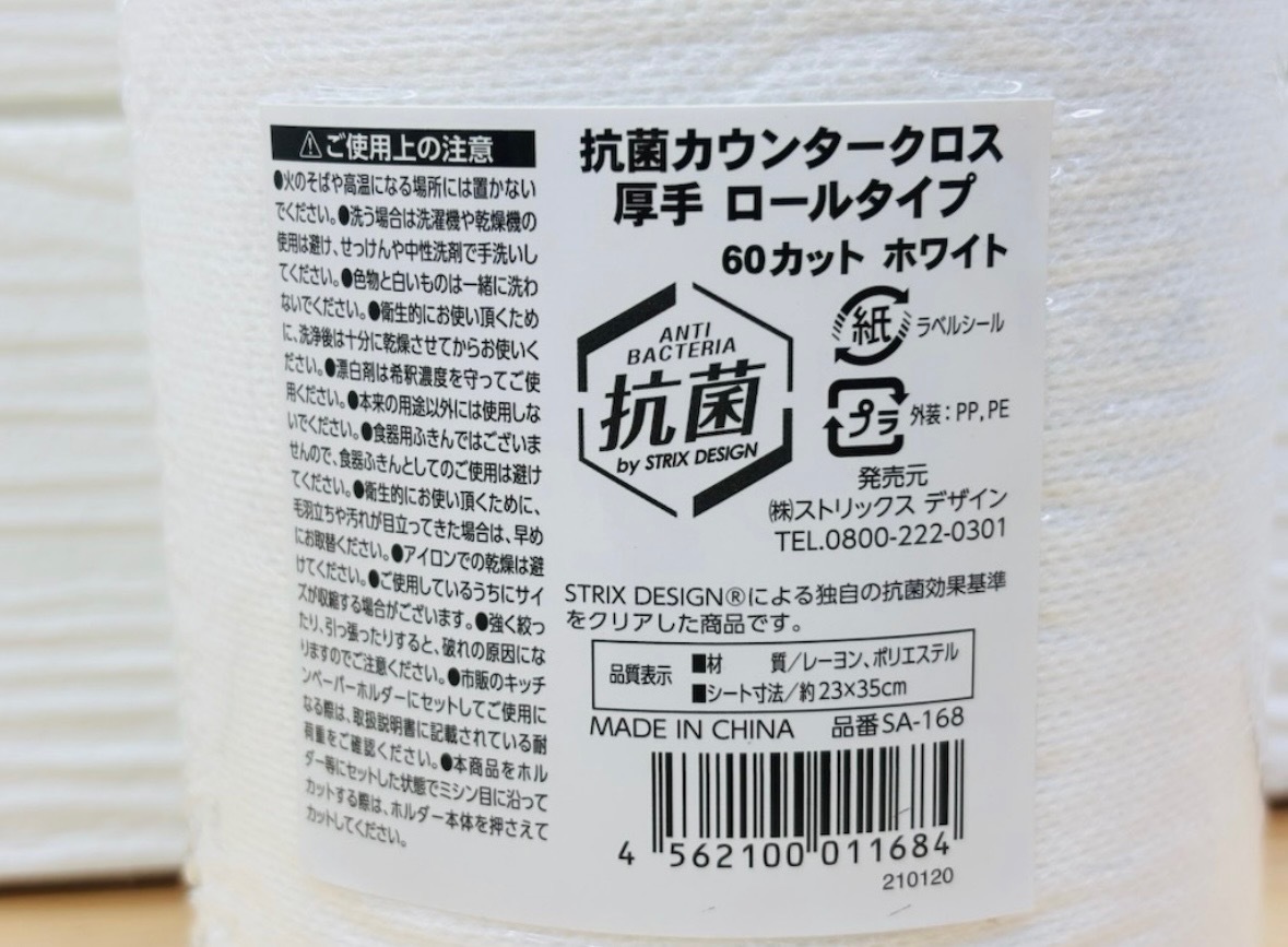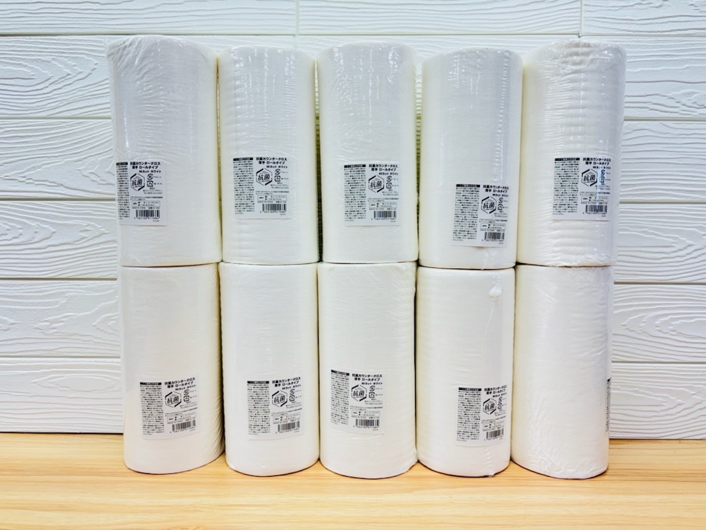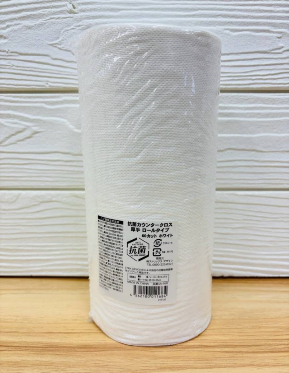 | ●本体サイズ:約縦23cm×横35cm(1枚あたり) ●入数:60カット ●色:ホワイト ●素材:レーヨン、ポリエステル(抗菌剤配合)