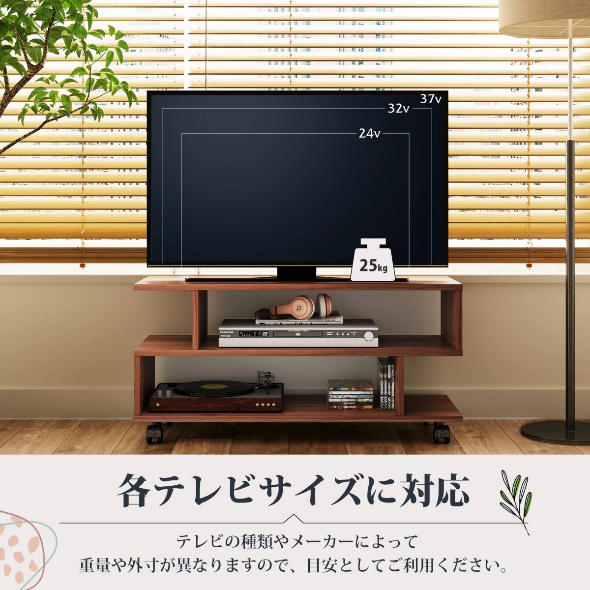 移動楽々!おしゃれS型テレビ台 キャスター付 ローボード 高品質 安全設計 操作