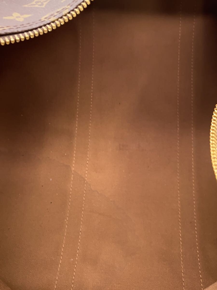 | 内側にシミがございます。角スレがございます。ヌメ革部分にカビやシミ、黒ずみ等が見受けられます。持ち手に使用感がございます。 店頭でも同時販売しておりますので、状態が変化する場合がございます。何かご不明な点などございましたらお気軽に店舗までお問い合わせくださいませ。 |