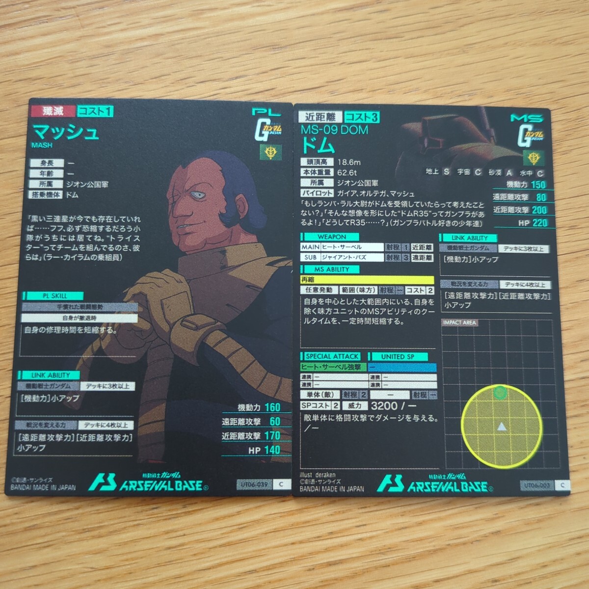 機動戦士ガンダム アーセナルベース カード マッシュ UT06-038 ドム UT06-003 黒い三連星