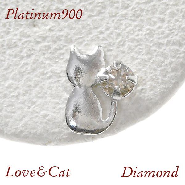 ダイヤモンド ピアス 一粒 天然石 計0.06ct プラチナ 4月誕生石 レディース 50代 40代 60代 30代 20代 猫 ねこ ネコ アニマル pt900 ギフト