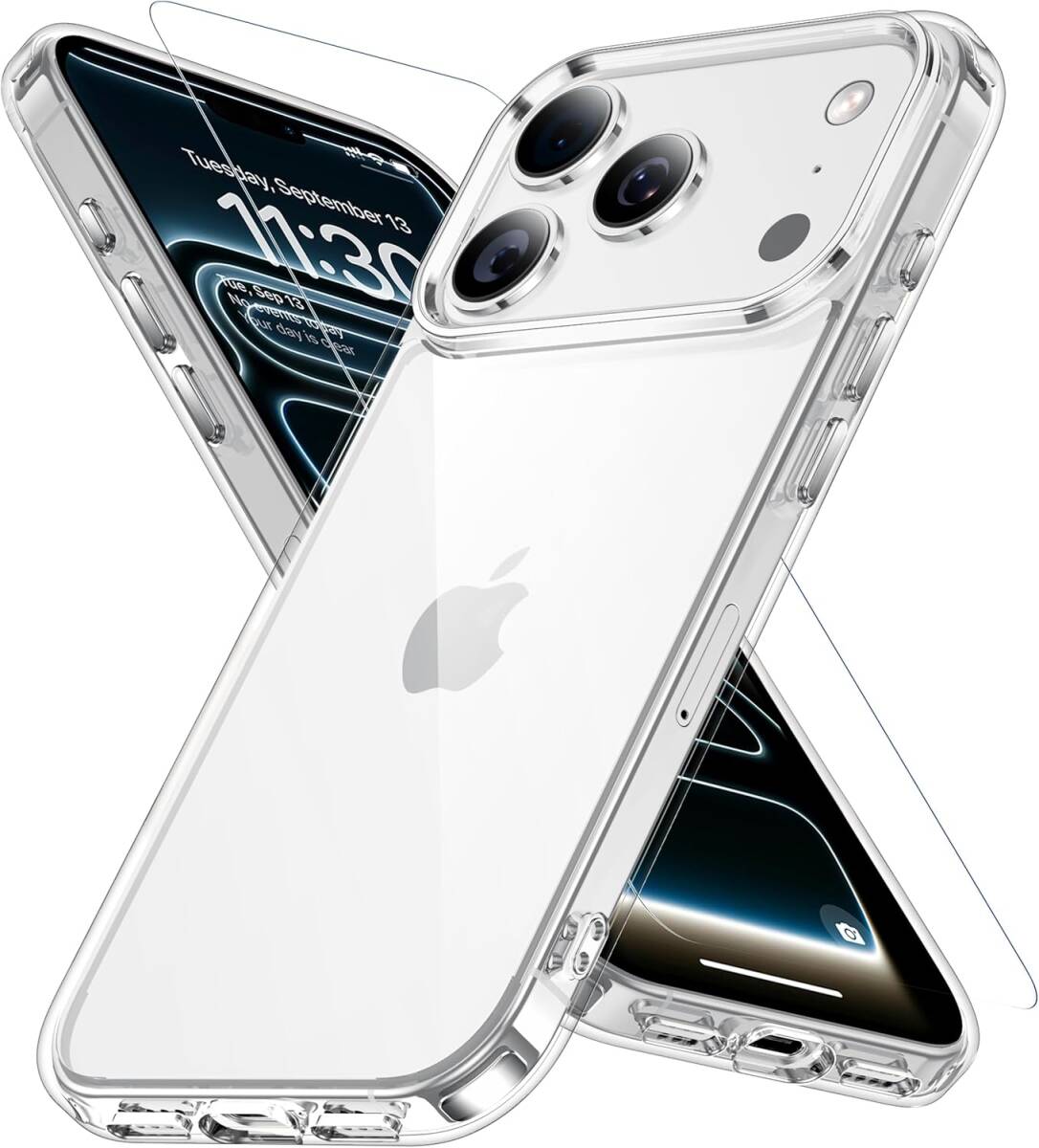 iPhone 17 Pro ケース クリア ガラス保護付き 黄変防止 指紋防止
