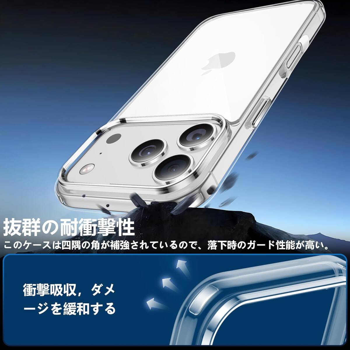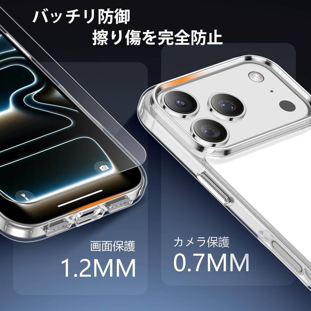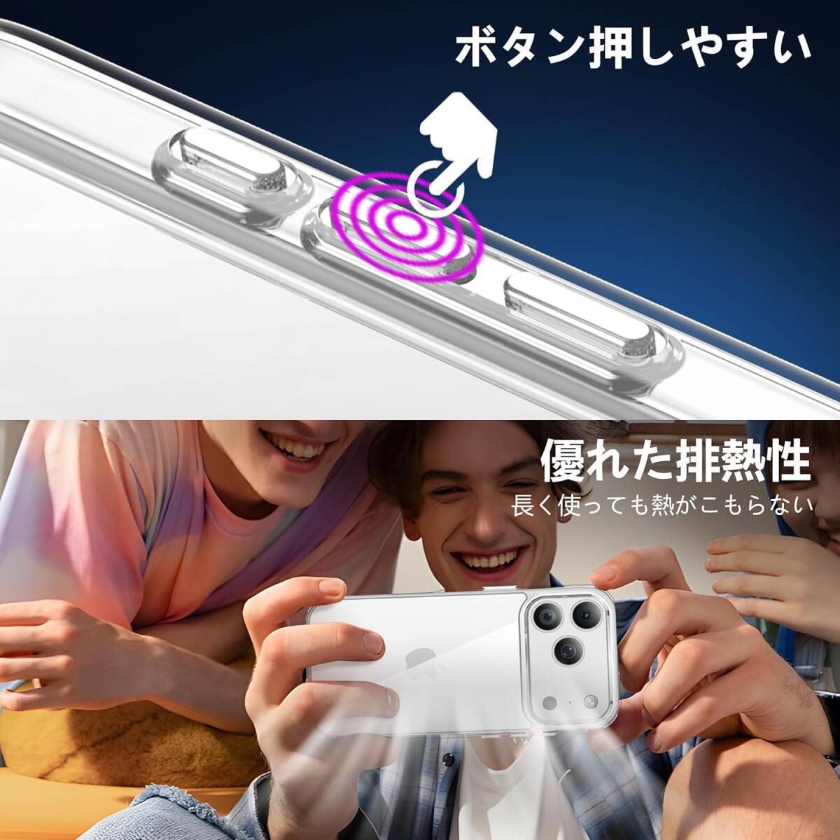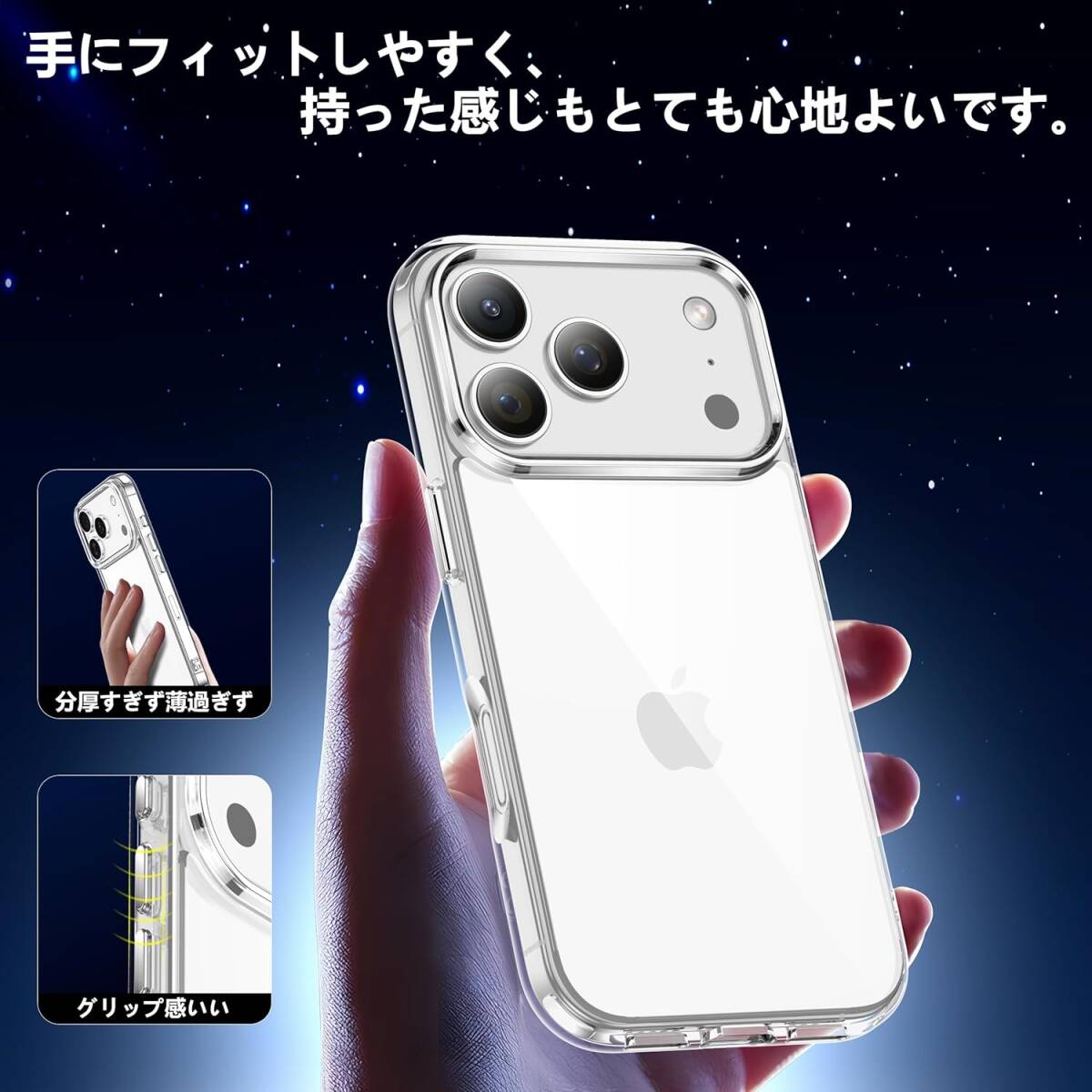 • 【驚きの透明度】透き通った高い透明度を誇り、iPhone 17pro本来の美しいデザインとカラーをそのままに楽しめます。黄変に強い素材を採用し、常に透明感を保ち、長時間使用しても黄色に変わりません。アイフォン17プロケースの背面は放熱性良いポリカーボネート素材で、熱を効果的に放散し、バッテリーにとても優しいです。