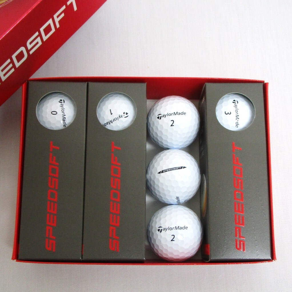今までにないソフトなボールが、ゴルフをもっとやさしくする。 速いボール初速と、とにかくソフトな打音・打感を実現!テーラーメイド史上最も軟らかい 『SPEEDSOFT(スピードソフト)』。 より大きく、より軟らかく進化したコア あらゆるレベルのゴルファーの為に、速いボール初速を維持しながらも、とにかくソフトで、心地良い打感・打音に注力し開発された『SPEEDSOFT』ボール。 軟らかい素材ながらも高い反発力を実現した新開発コアを採用し、クラブフェースとの接触時間を増やすことでスピンを抑え飛距離アップに貢献。 ボールスピード:速い アイアン飛距離:ロング ウェッジスピン:中/高 弾道:中 ディンプルパターン:エクステンドフライト カバー材質:アイオノマー 構造:2層 ボールNo:0.1.2.3 | |||||||||||