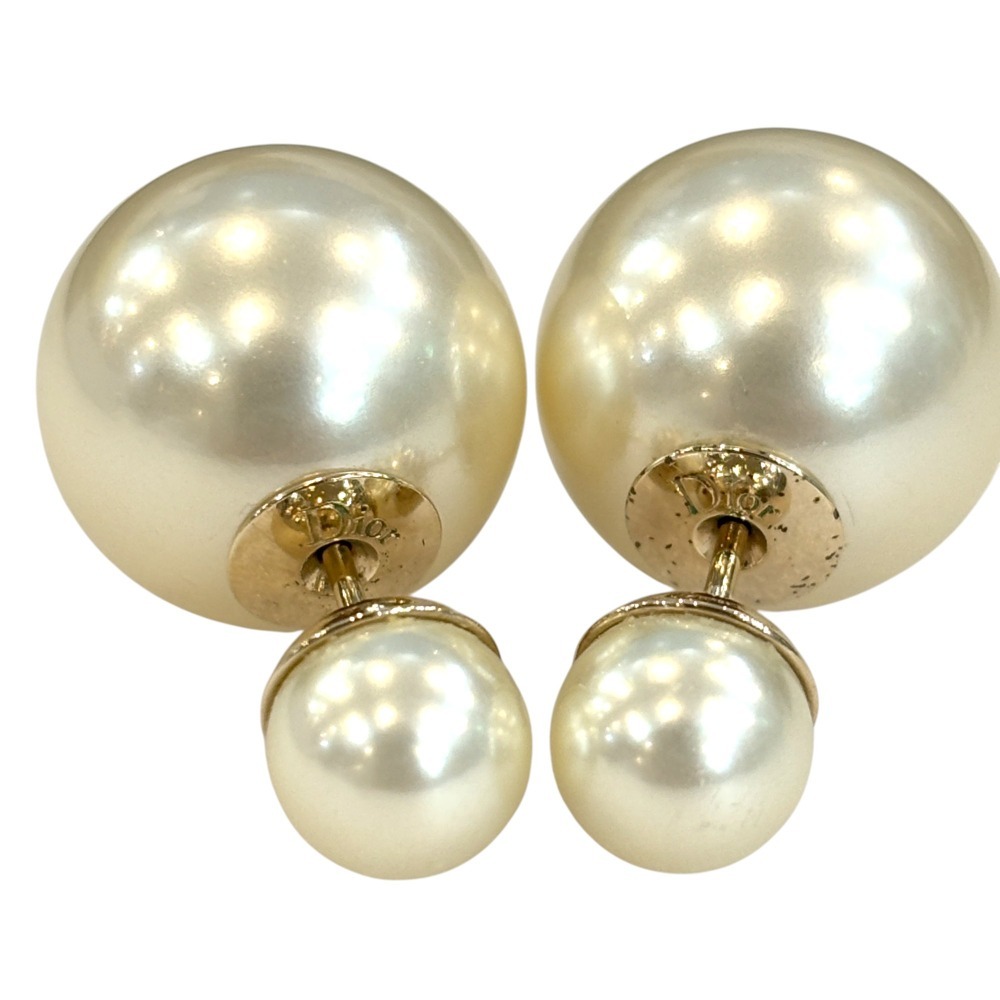 美品 Dior クリスチャンディオール Tribales フェイクパール トライバルピアス ホワイト×ゴールドカラー