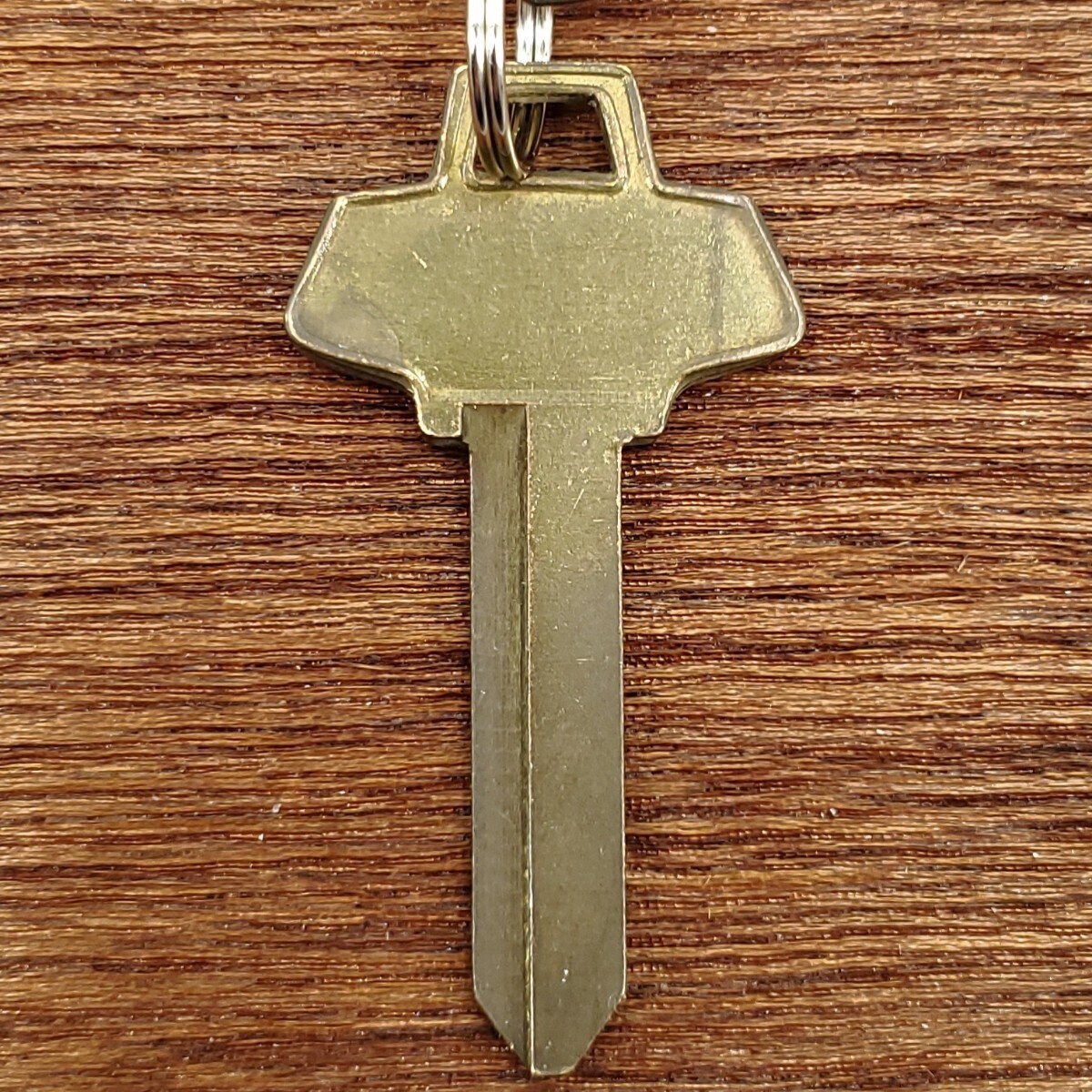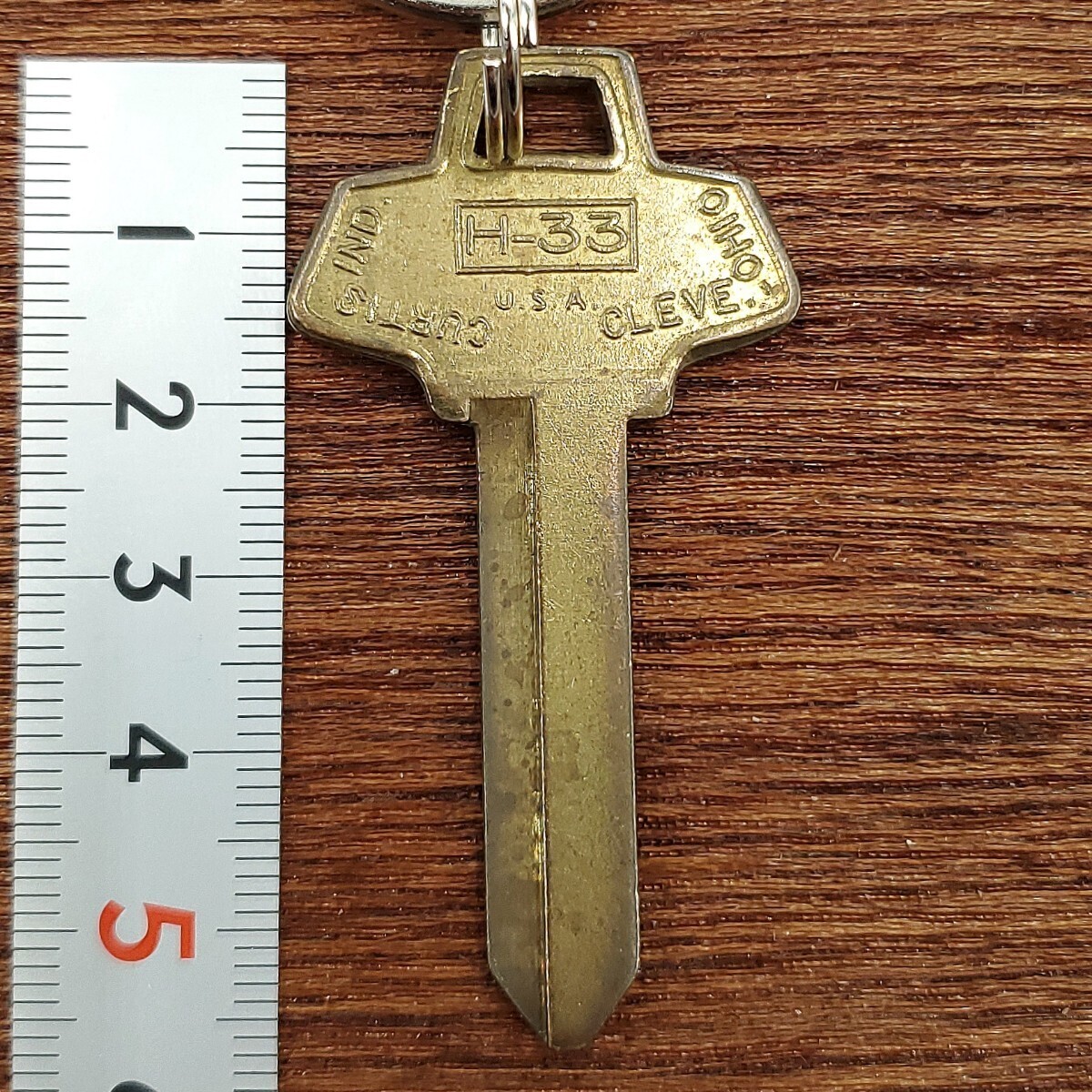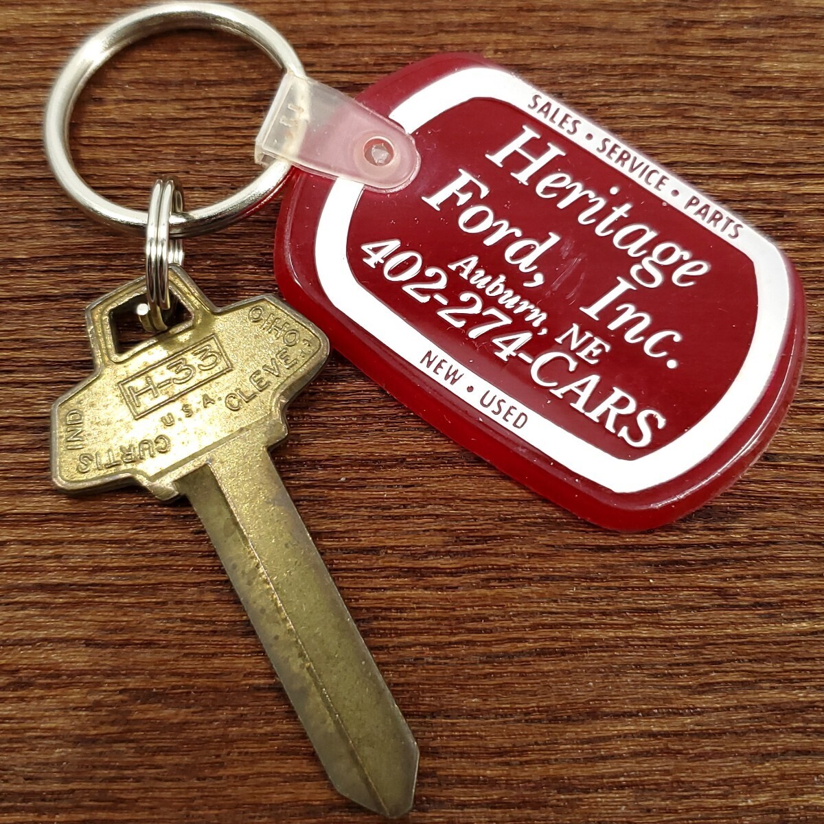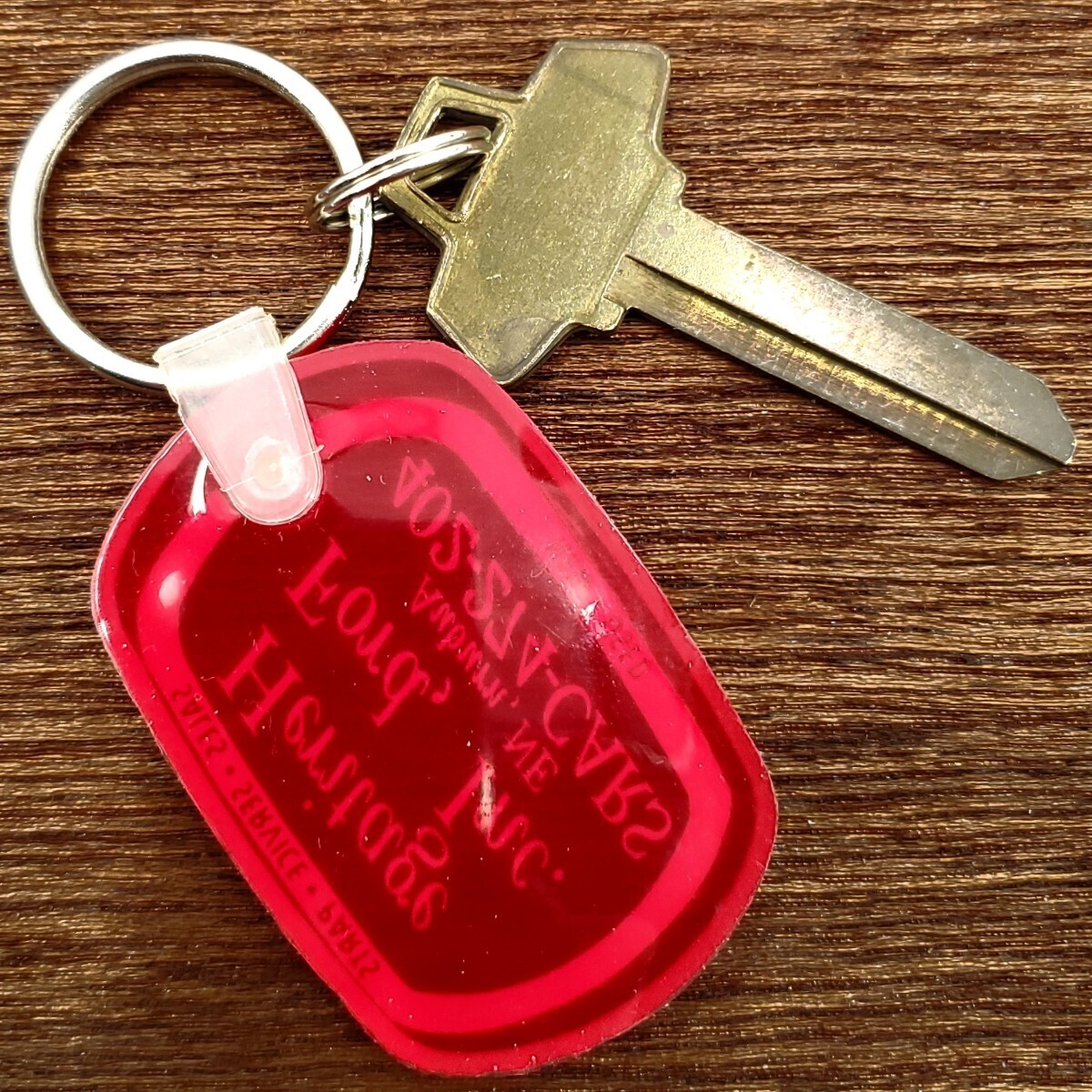 車関係の広告入りキーリング(ソフトラバー製)とヴィンテージ真鍮キーのセットです。