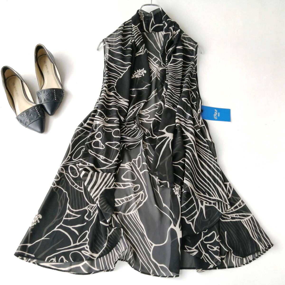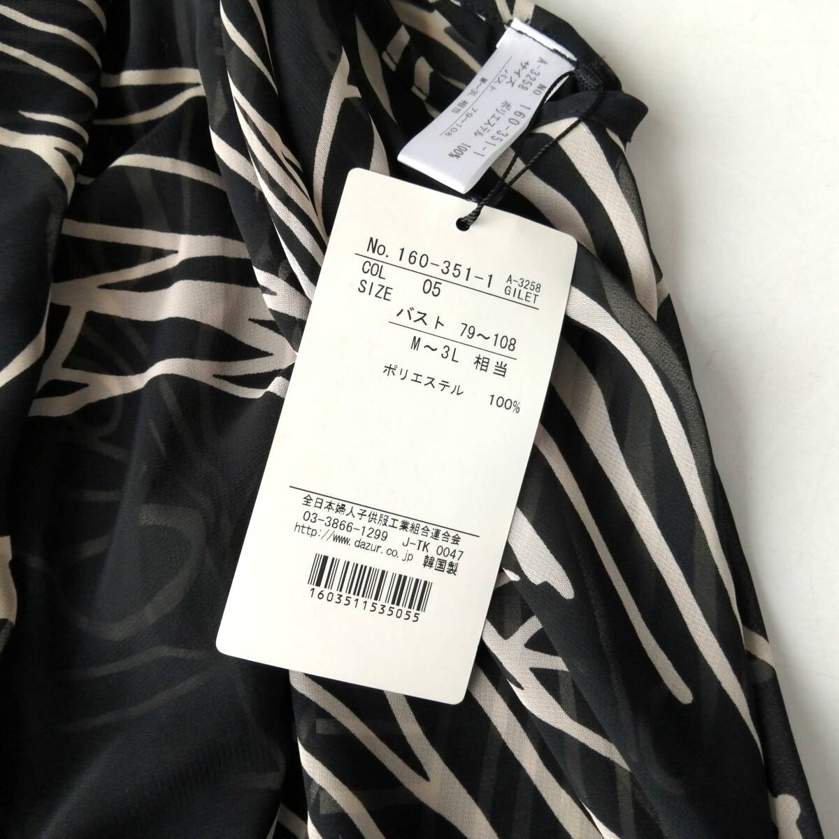d'Azur BASIC レディース♪未使用 シースルー ロングベスト 総柄 リゾート 黒 M-3Lサイズ 250919nm【4点同梱で送料無料】