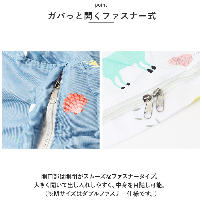 | 商品説明 | ・・散らかりがちなおもちゃを、ざっくりひとまとめ☆片付けが億劫になるのを防ぐ、おもちゃ収納袋が新登場。 ・【片付けが捗る袋型デザイン】 ・遊んだ後、気が重い片付け作業…。片付けが苦手なお子さまやパパ・ママにも嬉しい収納袋。ポイポイ入れるだけで、すっきり片付くお助けアイテム。 ・【ガバっと開くファスナー式】 ・開口部は開閉がスムーズなファスナータイプ。大きく開いて出し入れしやすく、中身を目隠し可能。(※Mサイズはダブルファスナー仕様です。) ・【場所を取りにくく、使い勝手ばっちり】 ・たんすや収納ボックスなどを置くスペースがなくても大丈夫◎使わない時はコンパクトに折りたたみOK。 ・【マルチに活躍】 ・おもちゃだけでなく、シーズンオフのファブリック用品や水着、衣類などの収納にもおすすめ。 ・【持ち運びや移動がスムーズ】 ・サッと持ち出せるハンドル付き。クローゼットの中の高い場所に置いた時も、ハンドルを掴んで引き出せちゃう! ・【選べる2サイズ】 ・細々した物や小さなぬいぐるみなどを収納しやすいSサイズ。毛布やクッション、大きなおもちゃもラクラク入るMサイズをラインナップ。 ・【お子さまも喜ぶポップなデザイン】 ・アニマルやお花のデザインをプリント☆お部屋のアクセントにも! |
