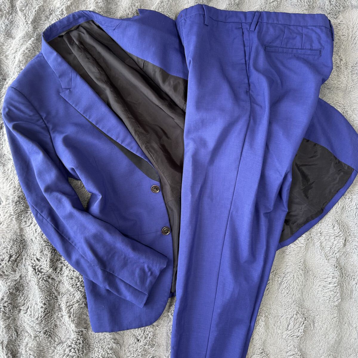 鮮烈のブルー!!【Paul Smith/ポールスミス】スーツ セットアップ テーラードジャケット パンツ Mサイズ相当 2B メンズ 上下セット 青 裏地