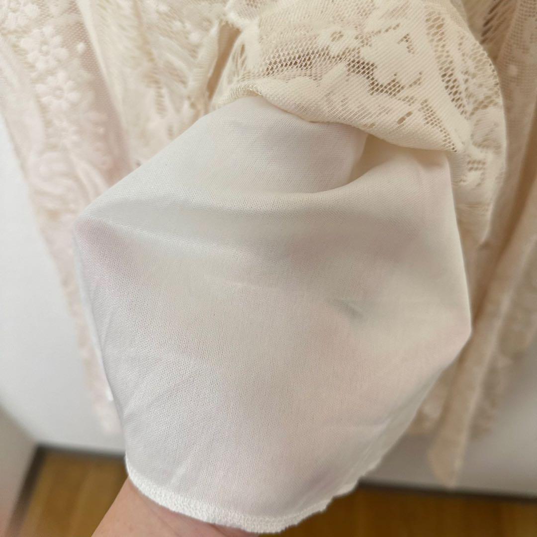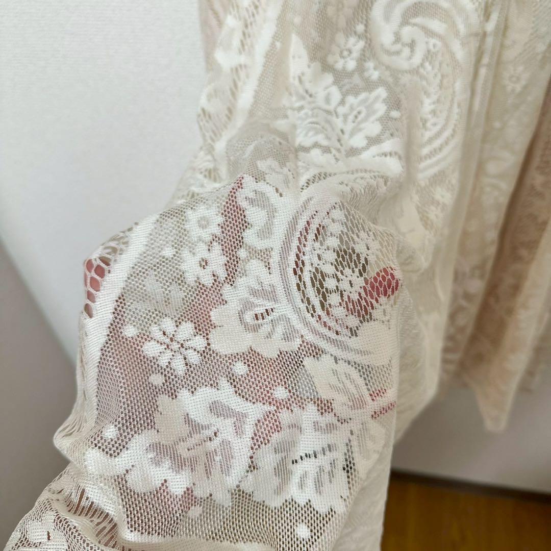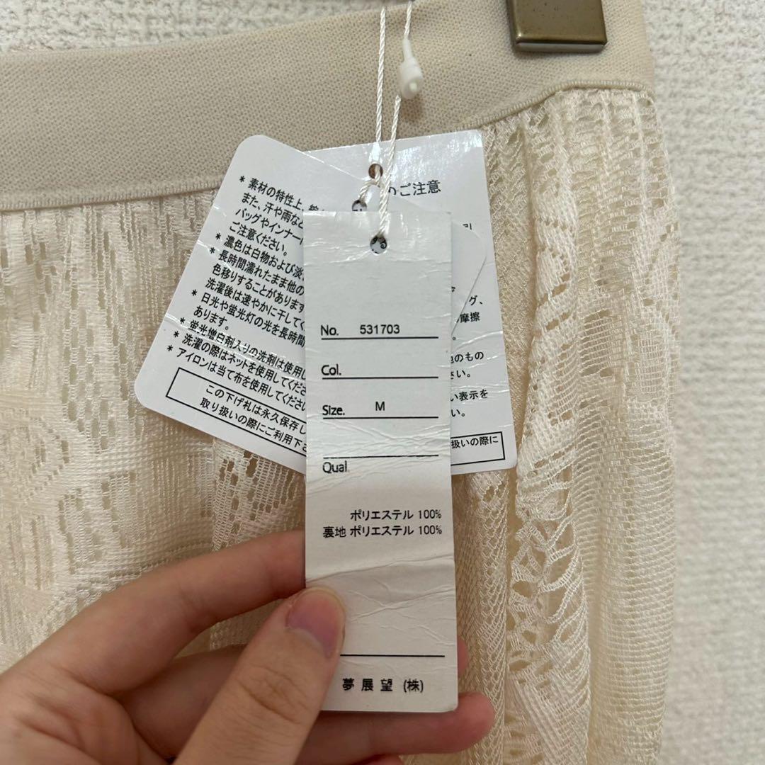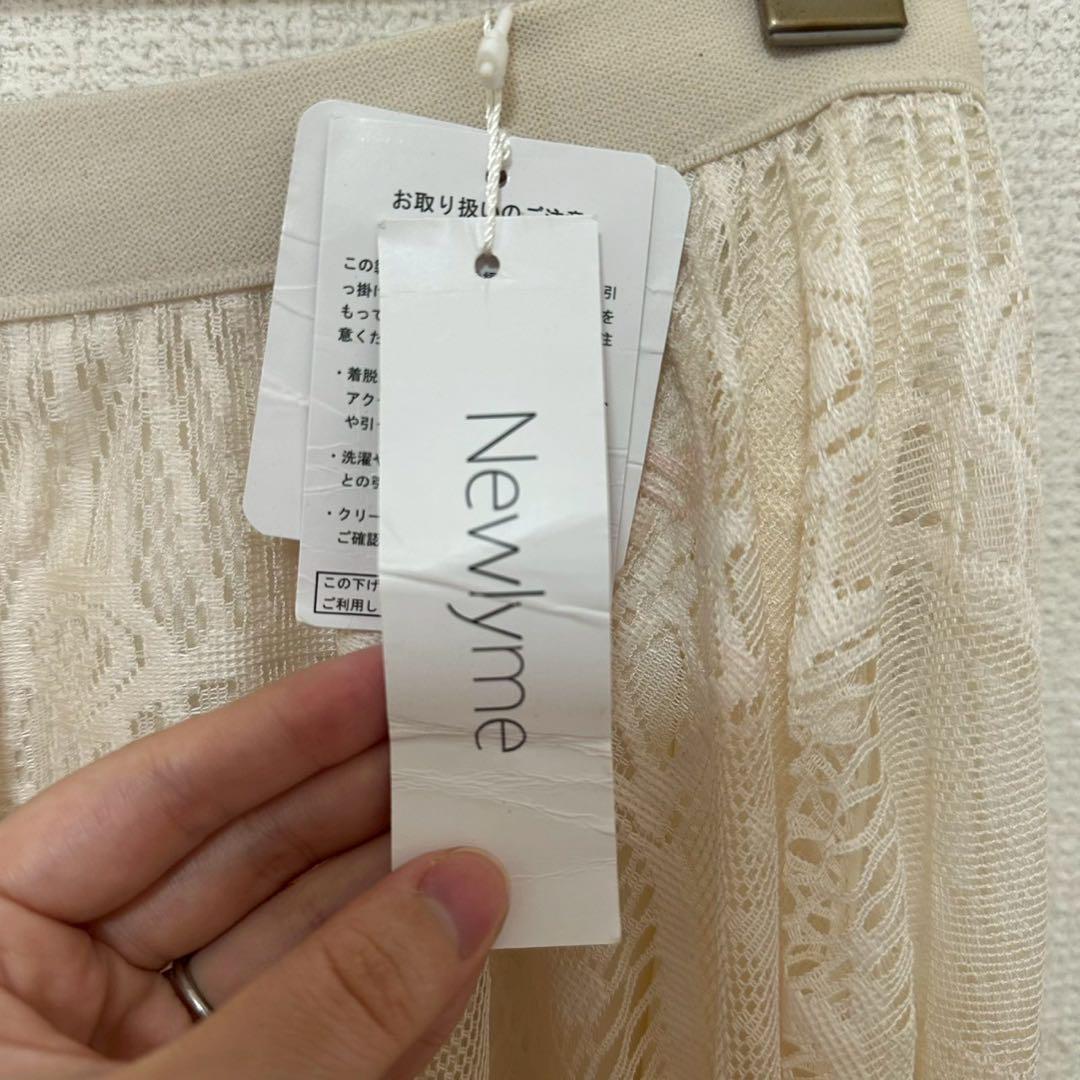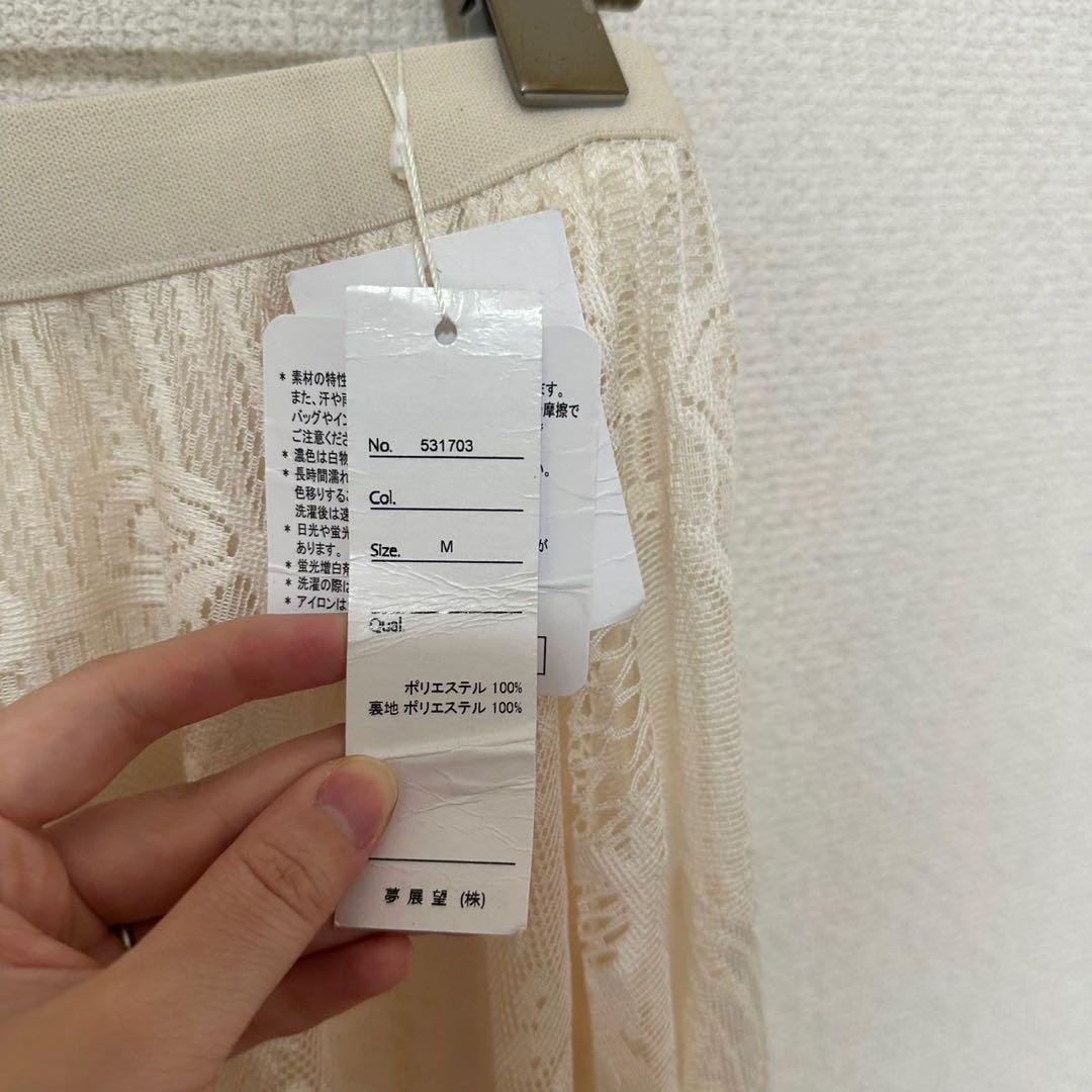 アイボリーのレースロングスカート、ゴムウエストで快適な着心地。