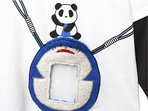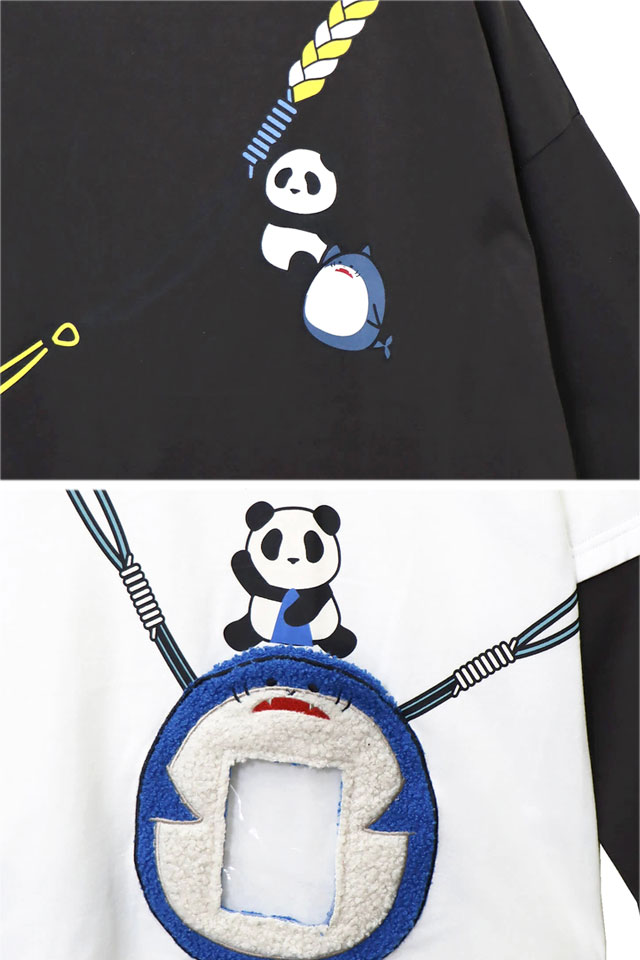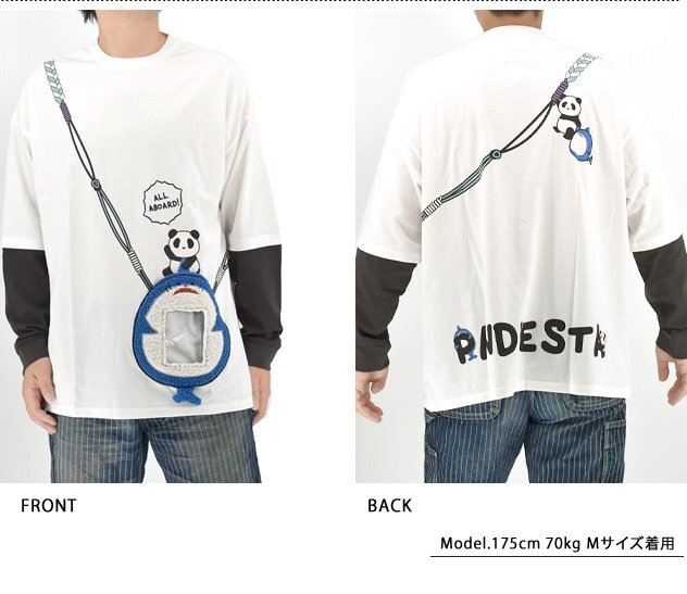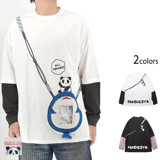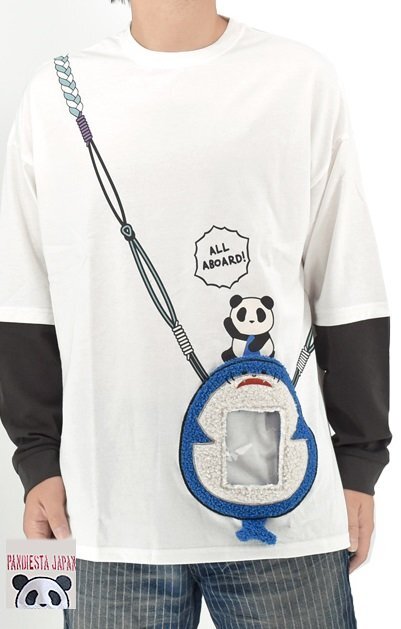 和柄ブランド【錦】の姉妹ブランドとして誕生した、お茶目なパンダをモチーフとした【PANDIESTA JAPAN】より「サメ型スマホショルダー風ポケット付きロングTシャツ(595750)」のご紹介です。 今や、錦の定番モチーフとなった「錦PANDA」!! 今回は重ね着風に見えるフェイクレイヤードのロングスリーブTシャツが登場しました。 リリース毎でご好評いただいておりますサコッシュポケットのアイテムに新商品が登場しました。 ロープワークが特徴のサコッシュをTシャツにデザインしており、そのサコッシュはポケットとして実際にお使いいただけるギミックが面白い一枚です。 モコモコとした立体的な素材感が特徴のアクリルボアを用いてサコッシュをデザインした長袖Tシャツになります。 身幅と肩幅に余裕を持たせたビッグサイズシルエットは、男女問わずスタイリングが可能。 幅広いシーズンでお使いいただけます。 | ||||||||||||||||||||