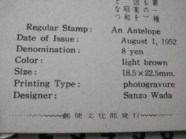 FDC 普通切手8円 かもしか 11 1952年 説明書有●53●同梱大歓迎