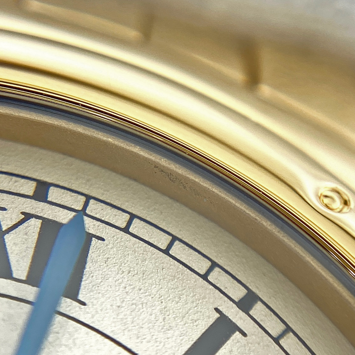 | 針に劣化、文字盤に汚れや塵の付着、所々に肉眼で確認できるキズや打痕、ブレスに若干の伸びがございます。 指定業者にて電池交換、仕上げ済み(2025年8月) |