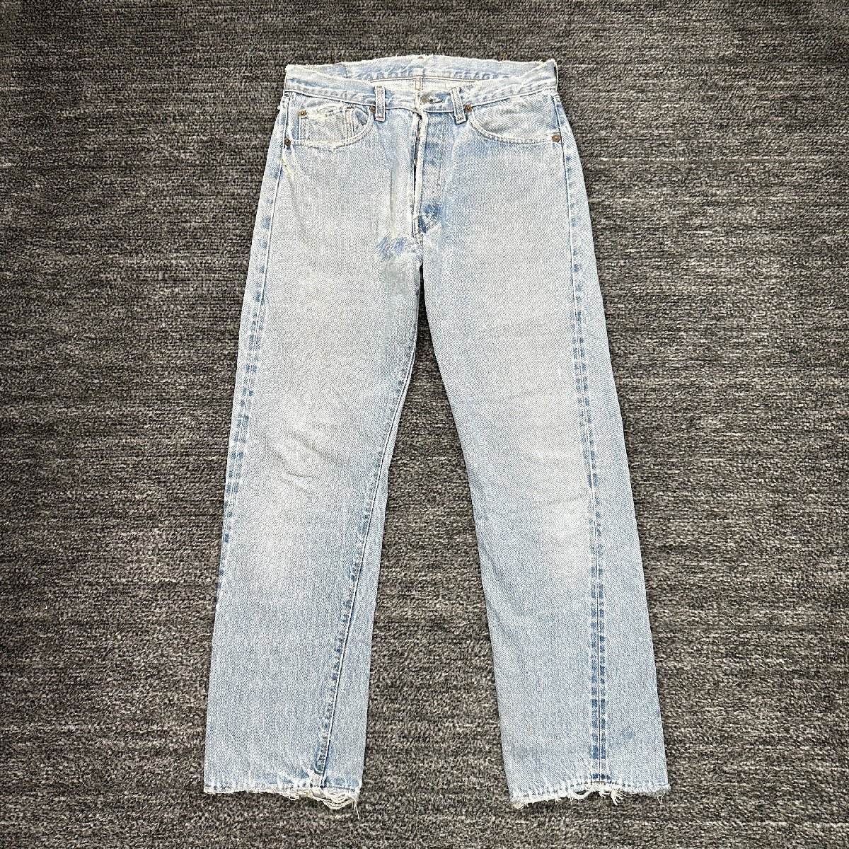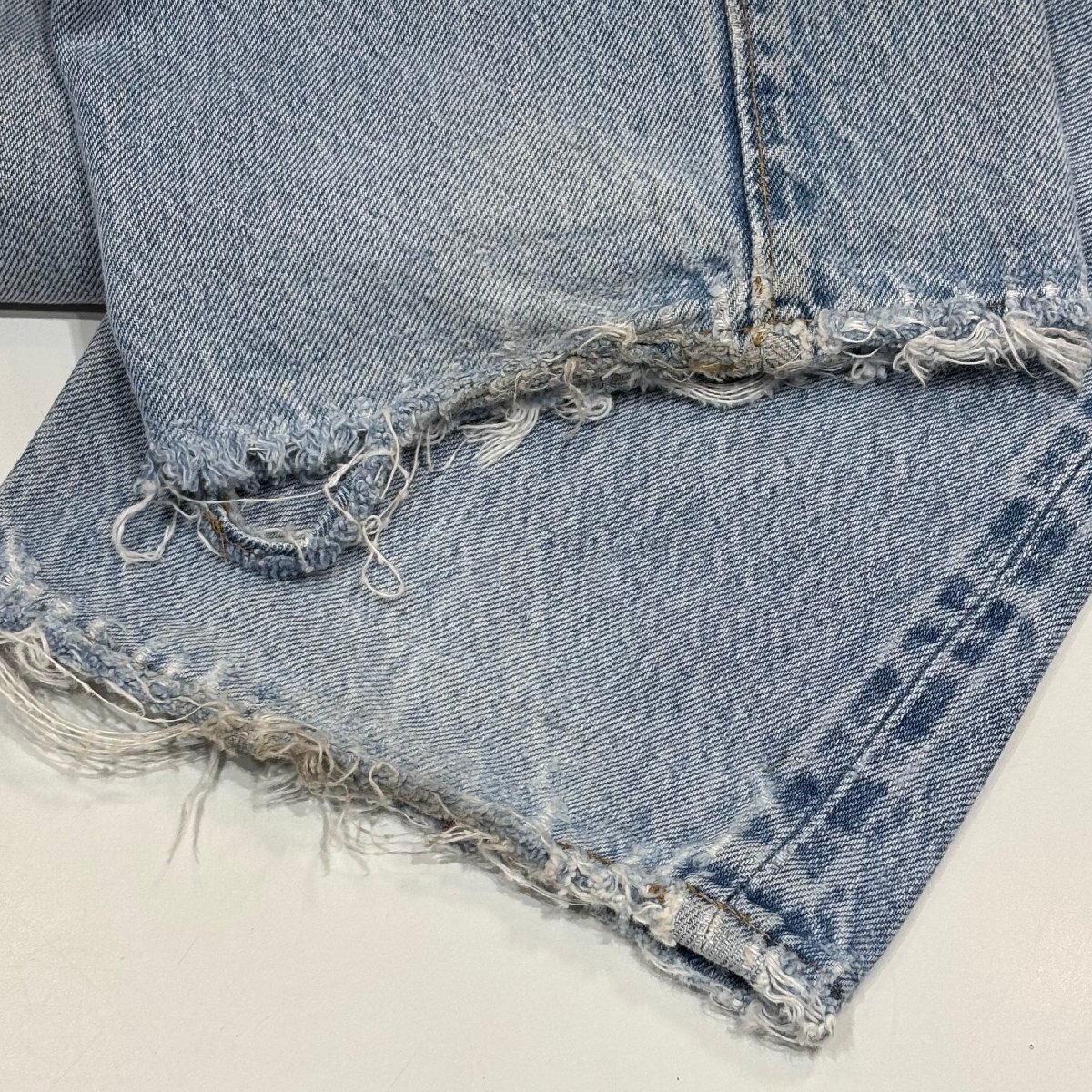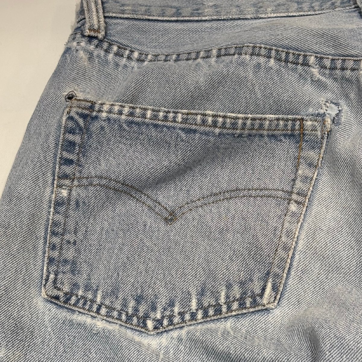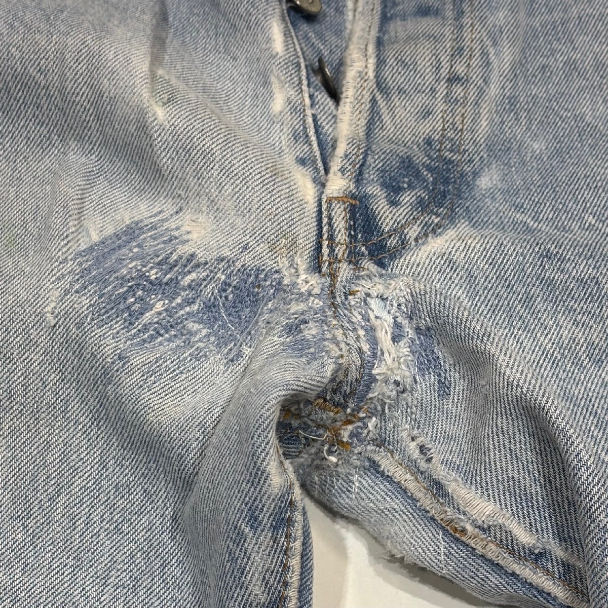 腰回りやポケット口、股下の生地に擦れによるダメージやリペアが多数ございます。 ※こちらの商品はビンテージ商品です。 可能な限り状態は明記させていただきます。 お伝えしきれない部分等も含め、あらかじめご了承の上ご入札ください。 |