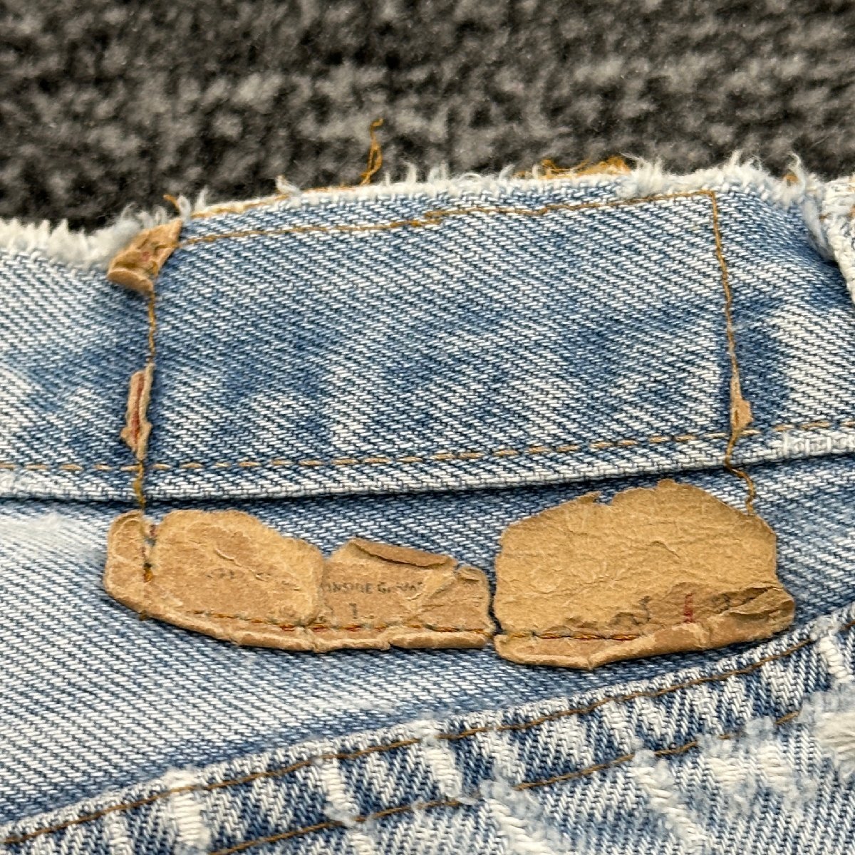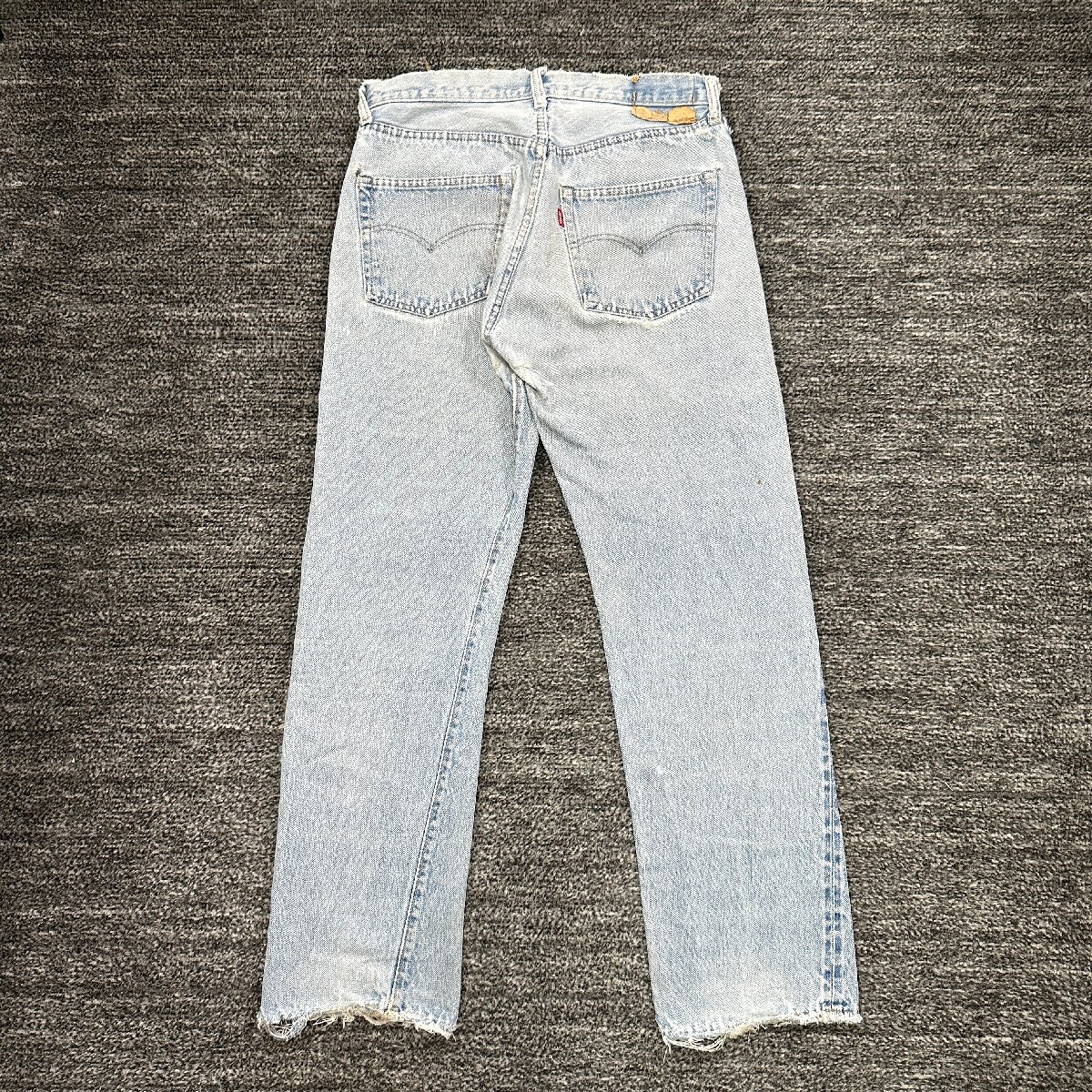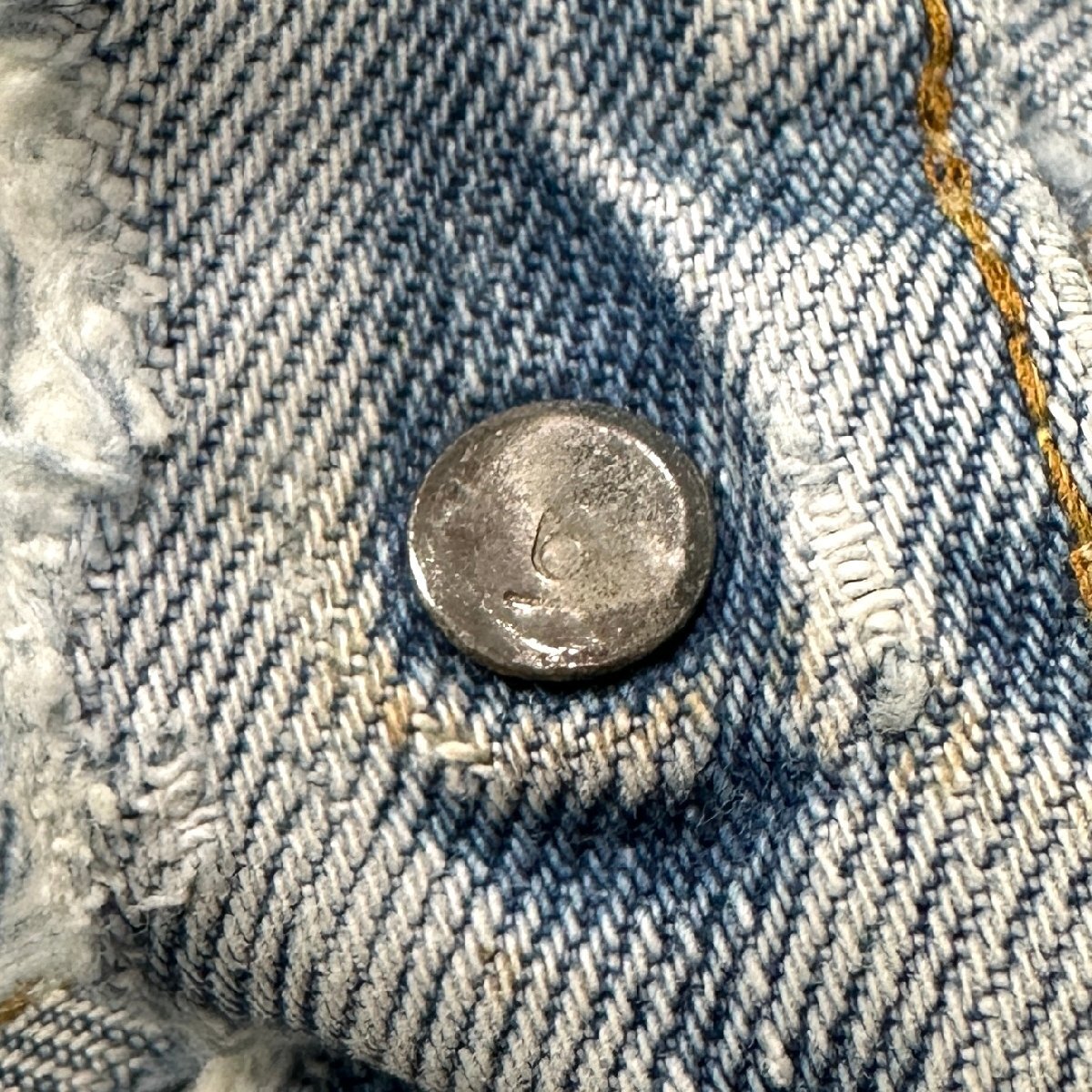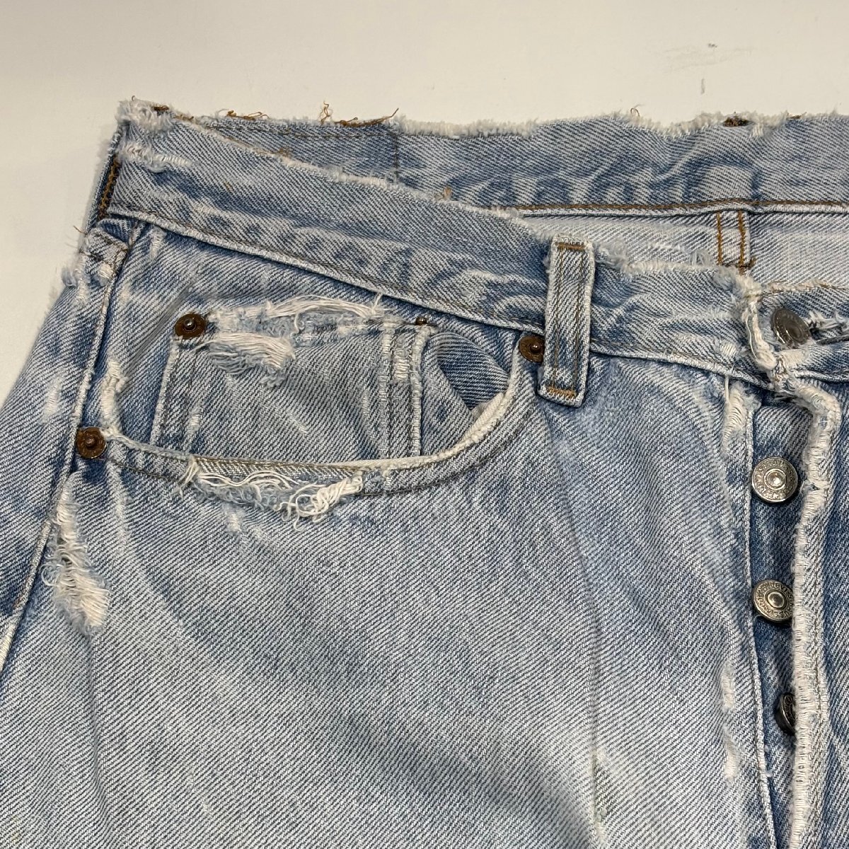 腰回りやポケット口、股下の生地に擦れによるダメージやリペアが多数ございます。 ※こちらの商品はビンテージ商品です。 可能な限り状態は明記させていただきます。 お伝えしきれない部分等も含め、あらかじめご了承の上ご入札ください。 |