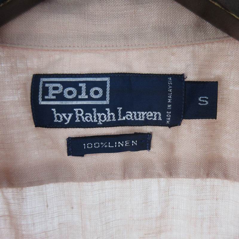 ポロ バイ ラルフローレン Polo by Ralph Lauren 90’S シャツ 半袖 オープンカラー 開襟 リネン 麻 ピンク ポケット 無地 S ヴィンテージ オールド トップス