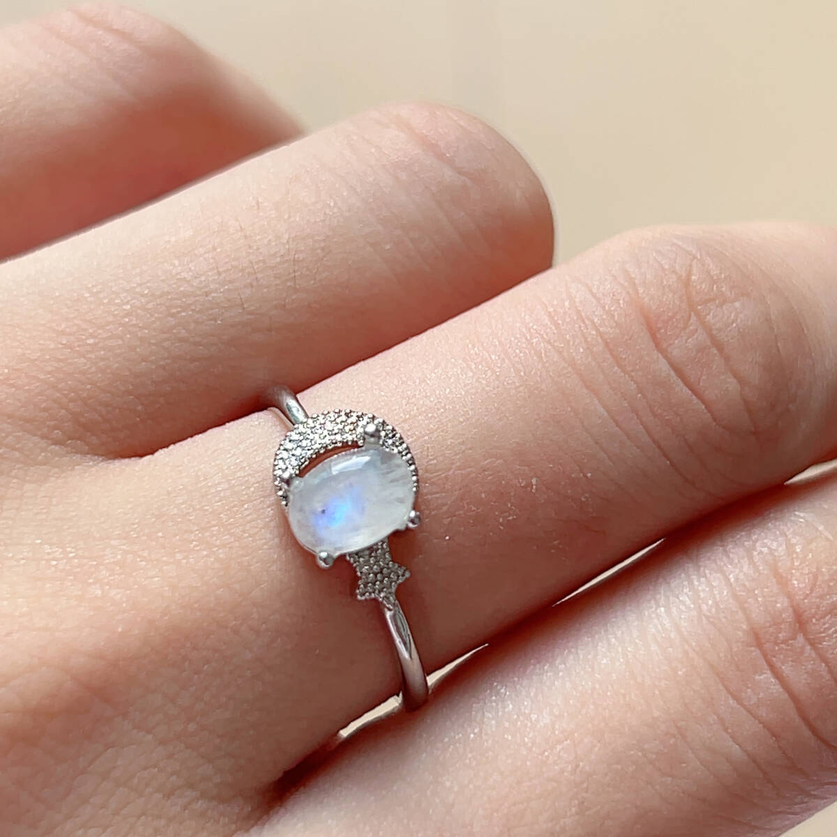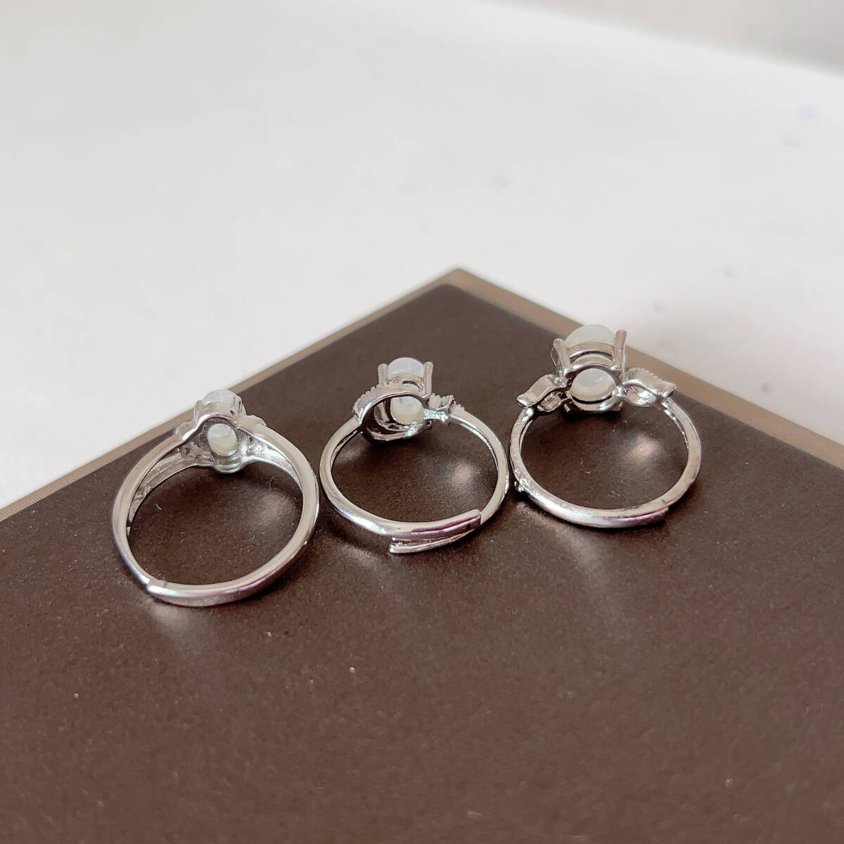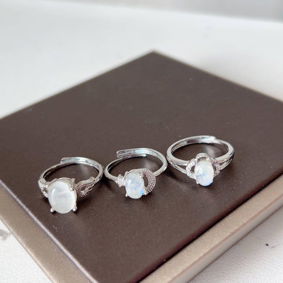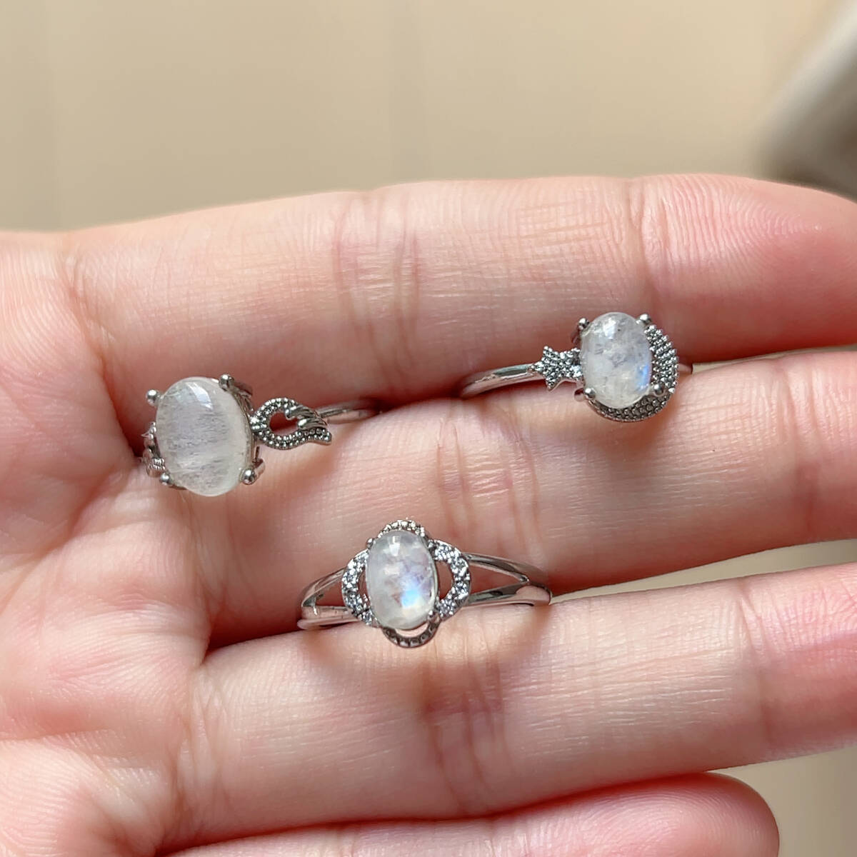 3点セット◇ブルームーンストーン◇指輪◇リング◇フリーサイズ◇天然石◇パワーストーン◇巾着袋つき◇プレゼントにも040S9132