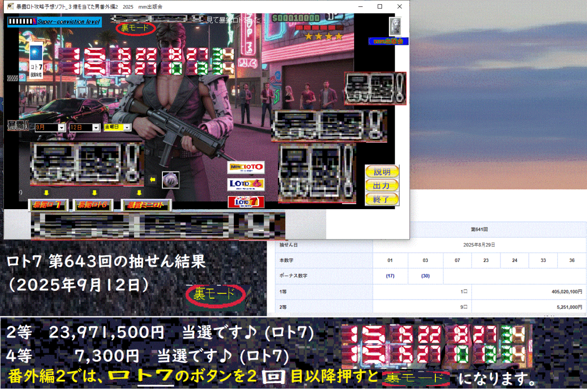 ※男番外編2では、ロト7ボタンを押しますと、2回目以降から、裏モードになります。