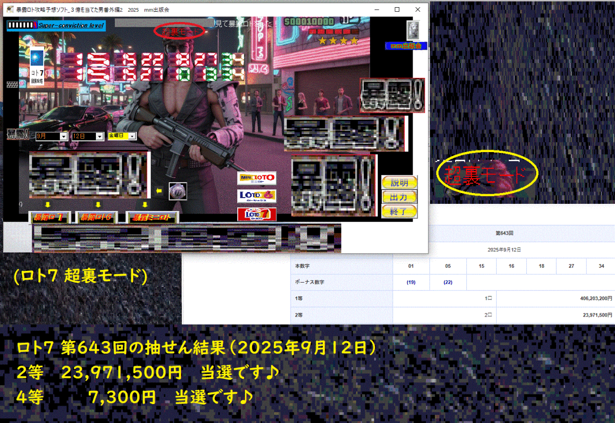 ※男番外編2では、ロト6 を押しますと、ロト7ボタン1回目以降から、超裏モードになります。