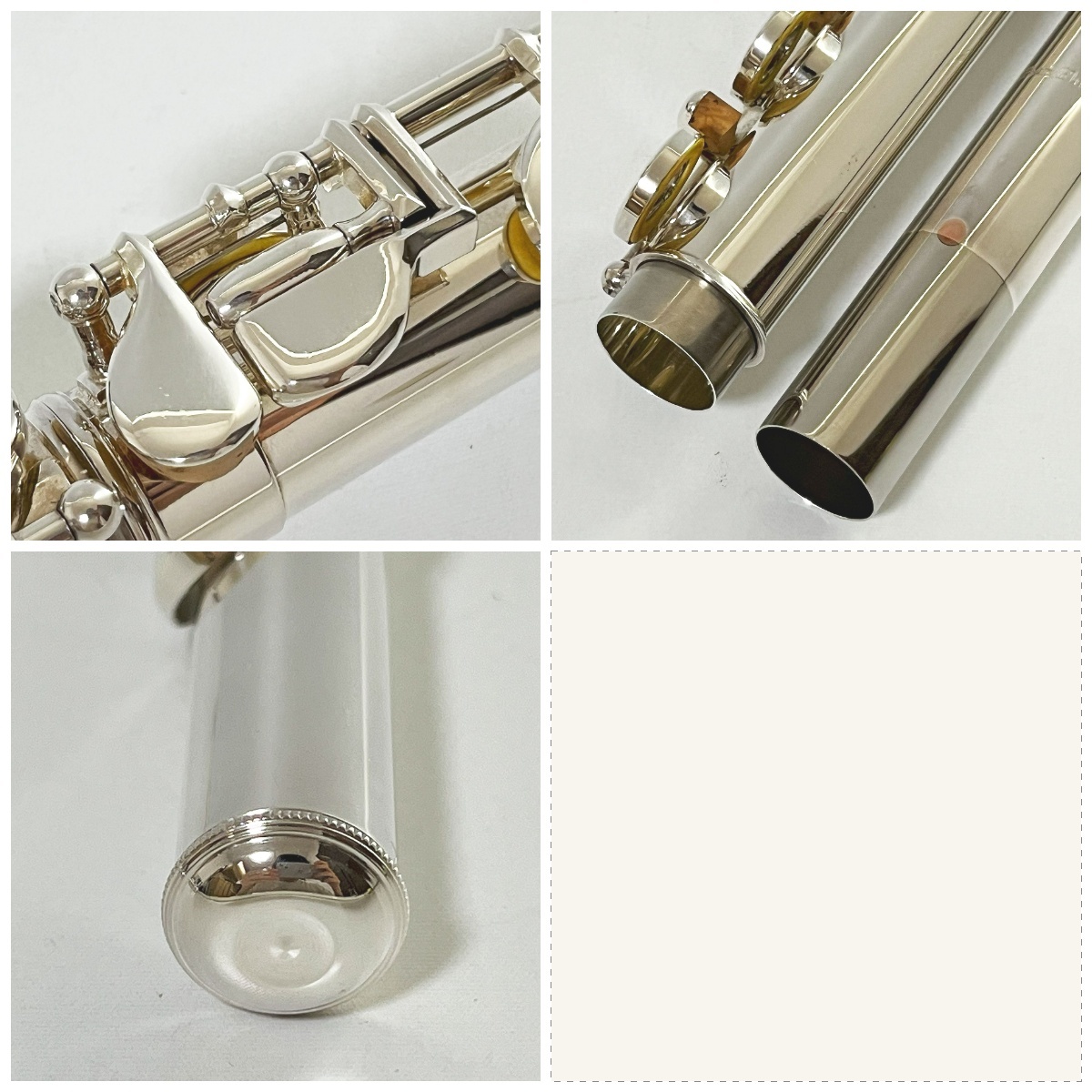 | ●中古品の為細かなスレ傷などございます。 ●演奏による音の出力、各キーの操作を確認しております。 ●菅体洗浄、磨き清掃、反射板磨き&位置調整、フィラーゲージ&リークライトを用い、タンポとトーンホールに隙間のない事を確認しております。 |