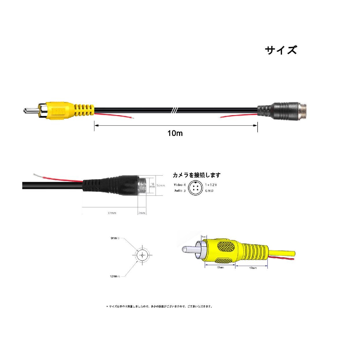 【商品特徴】 ◇同軸ケーブルをコンポジットに変換できます。 ◇この変換アダプターを使用すれば、4PINタイプの端子にRCA端子の機器から映像を入力することが可能です。 ◇4ピン(メス)⇔RCA(オス)変換アダプタ 、映像/電源ケーブル 車載モニターとバックカメラの接続に 4ピンとRCA互換 AV延長コード ◇4ピン航空コネクタのモニタにRCA バックカメラ等を接続する場合等にご使用頂けます。 【商品仕様】 商品番号 :INI-237 商品名:4PINとRCA変換ケーブル 4ピン端子:メス RCA端子:オス ケーブル長さ:約10m ケーブル径:約5mm 軸材質:純銅 【セット内容】 変換アダプタ×1 【注意事項】 ◇機器や相性等にによりご使用になれない場合もございますので予めご了承ください。 ◇日本語説明書は付属いたしません。また、使用方法についてのサポートは行っておりません。 ◇当商品を使用した際に起こった事故や損害については一切の補償をいたしかねます。 ◇ご使用の際は事故のないように、取り扱いには充分お気を付けください。 ◇ご使用済みの場合は返品返金対応しかねます。 ◇色違い、相性が悪いなどの理由で返品交換は受け付けできません。