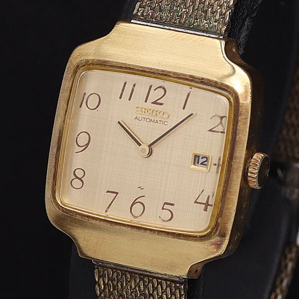セイコー AT/自動巻 2415-3001 ライトゴールド文字盤 デイト スクエア アラビア レディース腕時計 KYM
