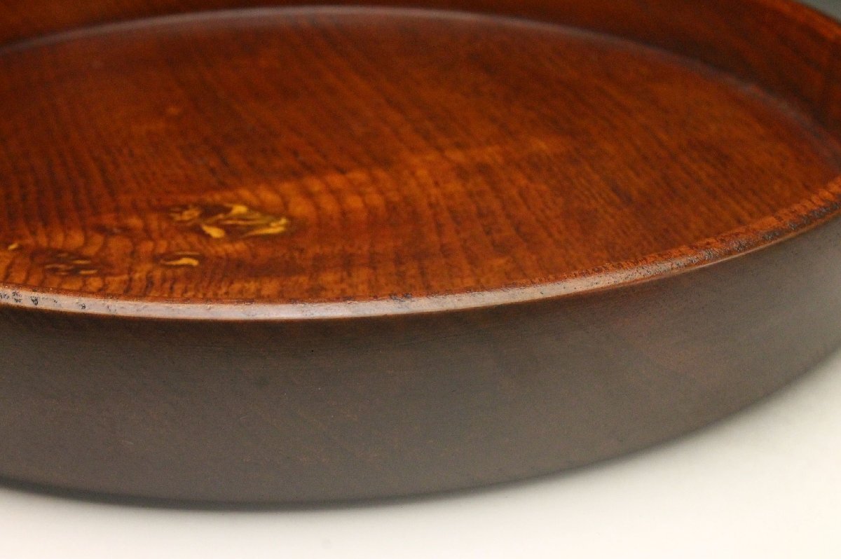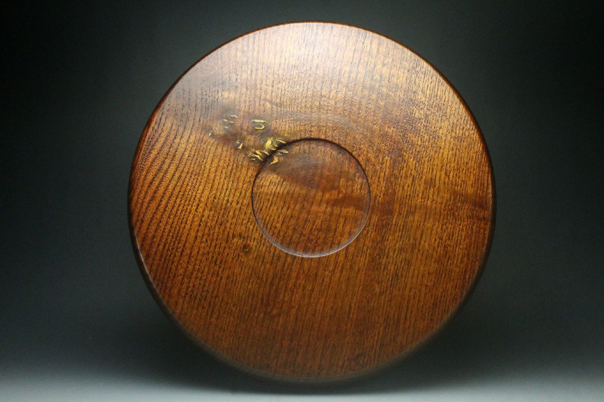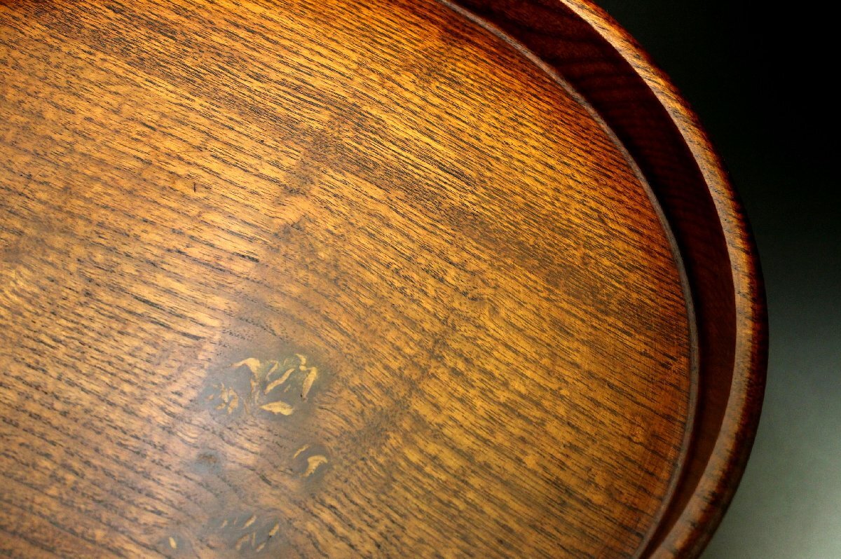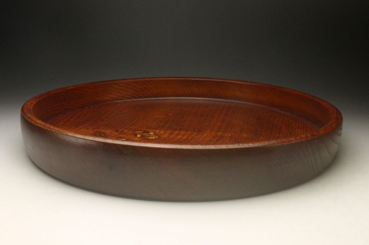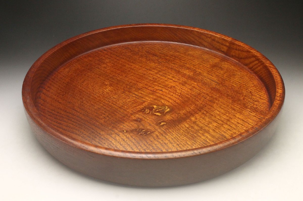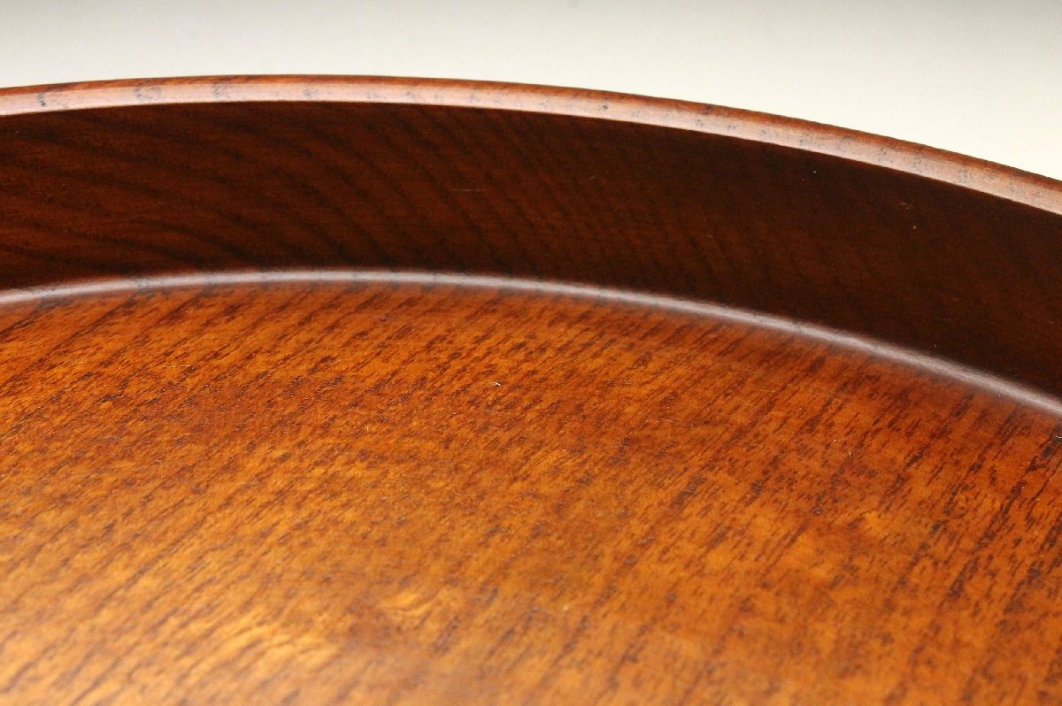 【余韻】 時代物 天然木製 欅材 丸盆 煎茶盆★径:30cm 茶道具 美品<同梱可>