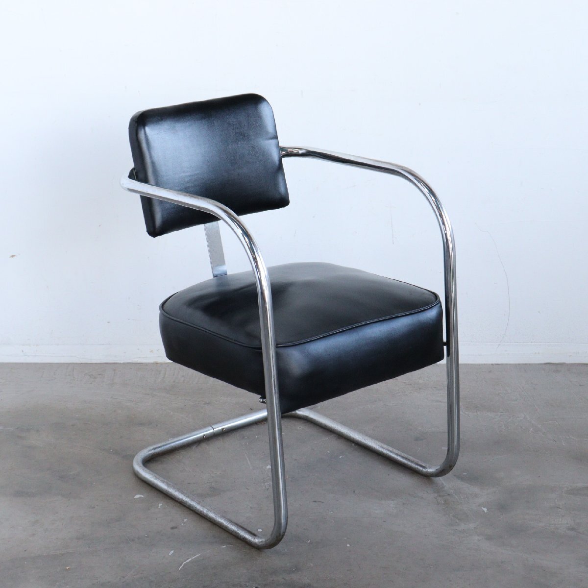 | 商品説明 explanation | ヴィンテージ カンチレバーチェアです。 おそらく「ROYAL METAL MANUFACTURING CO.」社製かとおもわれます。 工業デザイナー「Kem Weber」がデザインし、1930年代頃に流行していた、アールデコやマシンエイジの流れを汲んだモダンなデザインです。 デザインもさることながら、座面はクッション性があるため、ゆったりと腰掛けられる椅子です。 ショップ什器、ご自宅などにいかがでしょうか。 |