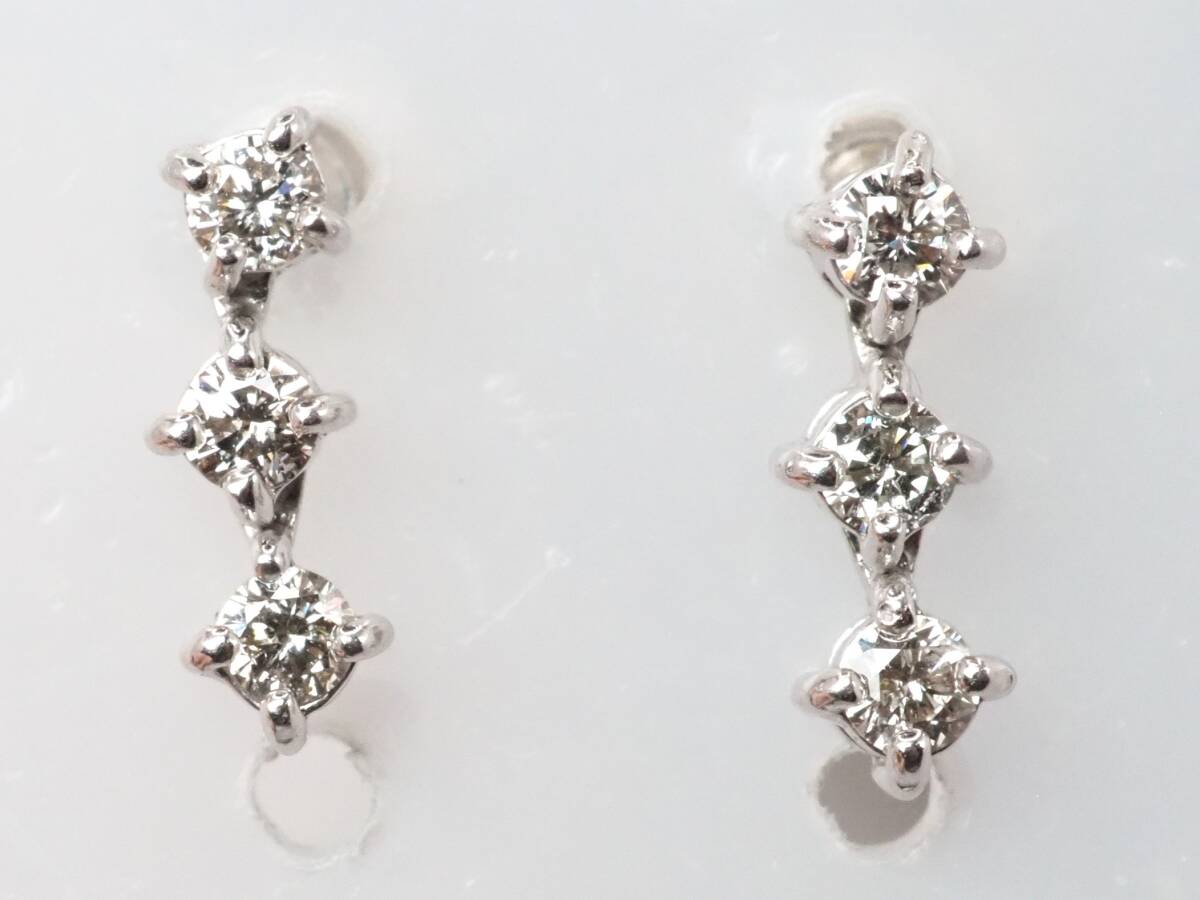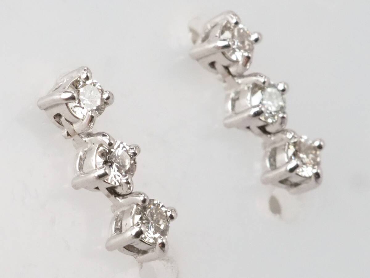 K18WG 天然ダイヤモンド 計0.24ct/0.12ct/0.12ct/0.9g ピアス