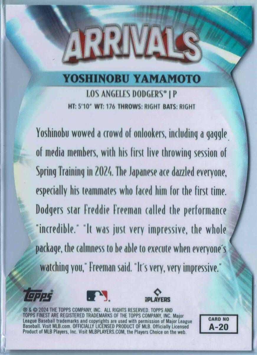 山本由伸 2024 Topps Finest Arrivals ダイカット #A-20 RC ドジャース Dodgers