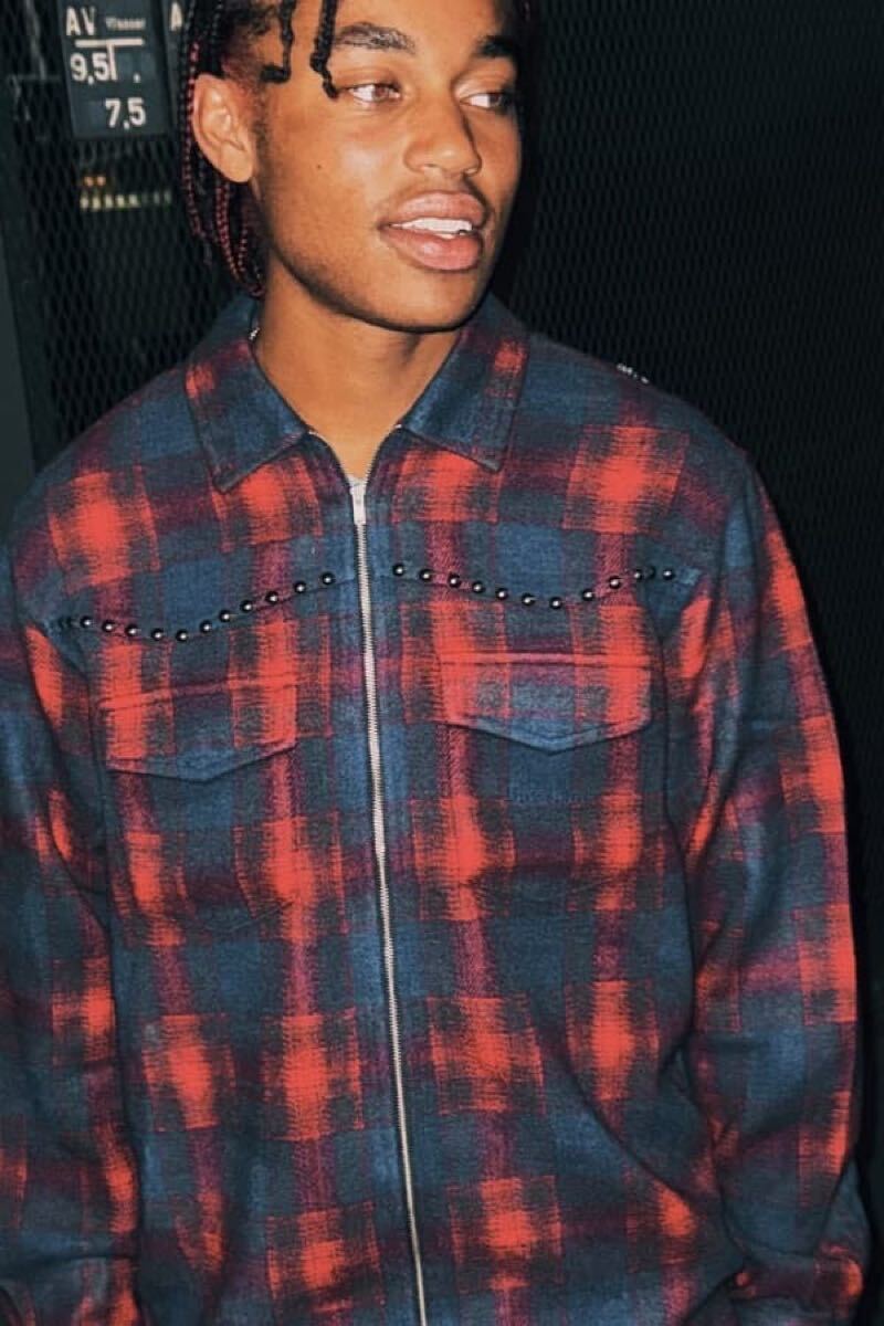 ●Supreme 25AW Studded Shadow Plaid Zip Up Shirt