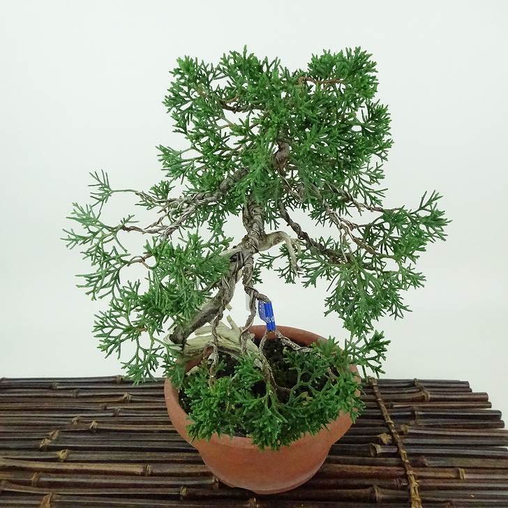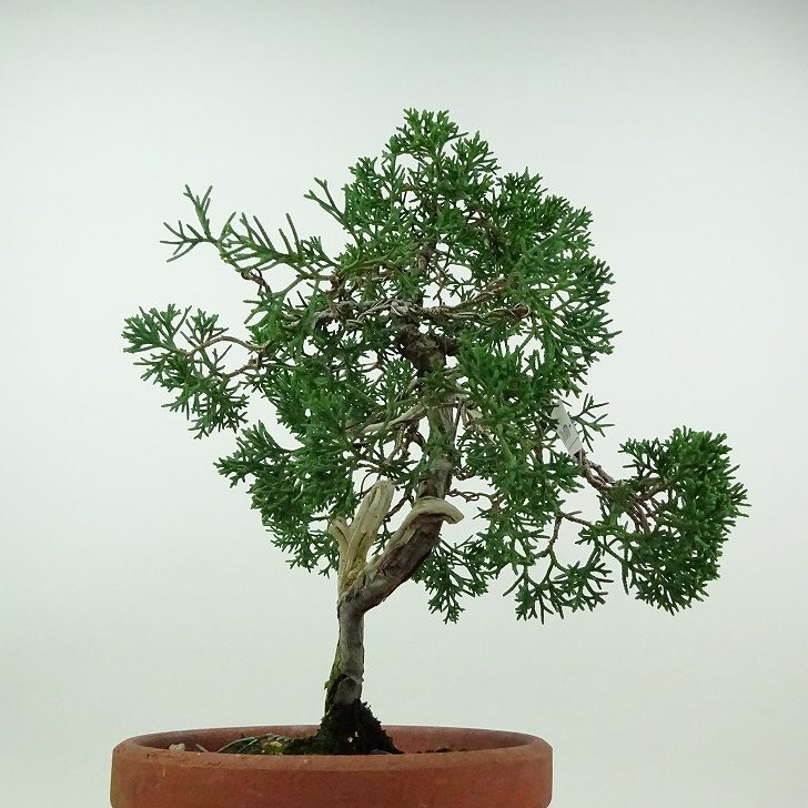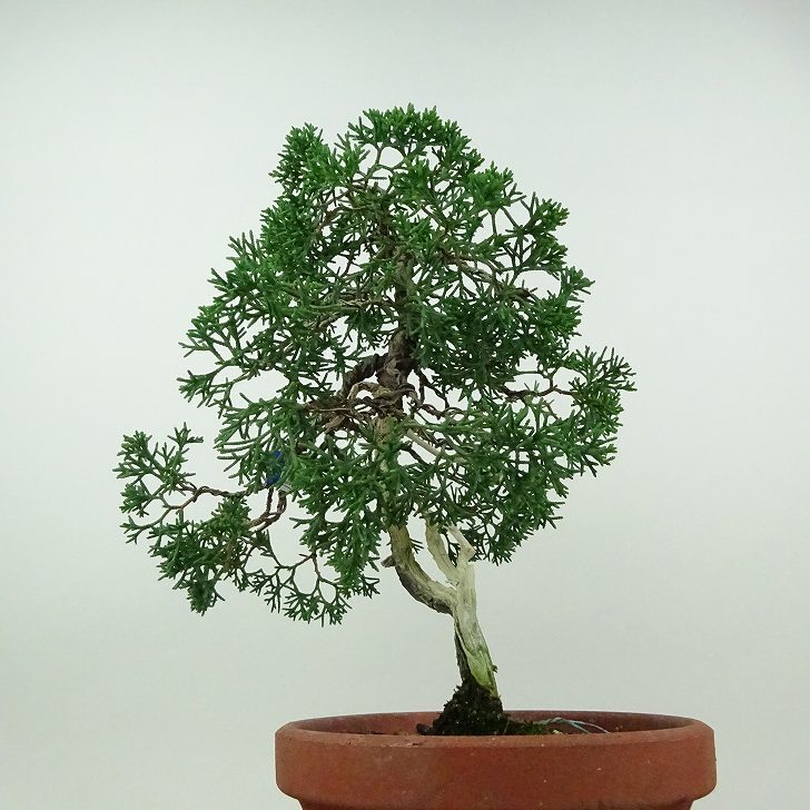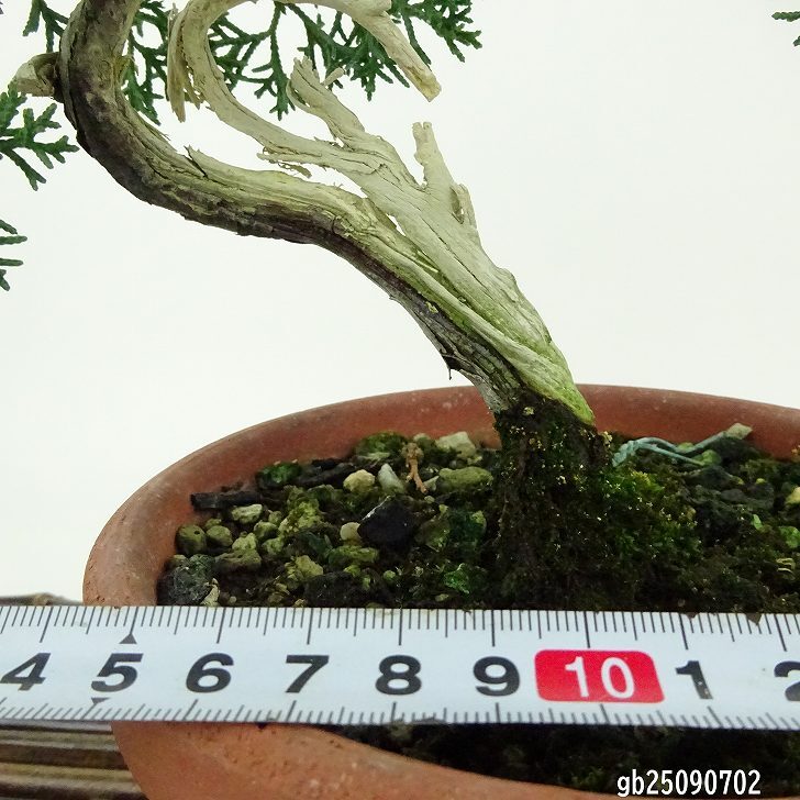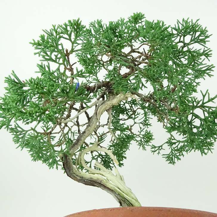 | ■植物ですので撮影時期や季節によって剪定などの手入れにより写真から変化がございます。撮影日をご確認のうえ、ご注文ください。 ■年に一度、冬頃にジン・シャリのお手入れをおこなっています。薬品の関係で黄色く変色しているようにみえる場合がありますが徐々に薄れていくので問題はありません。 【真柏盆栽】 シンパクの1番の特徴と言えば、短く締った紐状の葉と、わずかな水吸いでも生き抜くことができる強靱な幹枝です。自然界では積雪や強風などで押しつぶされ木部が露出し、朽ちて白骨化したものが見られます。枝の一部が白骨化したものを神(ジン)、幹の場合は舎利(シャリ)といいます。 |
