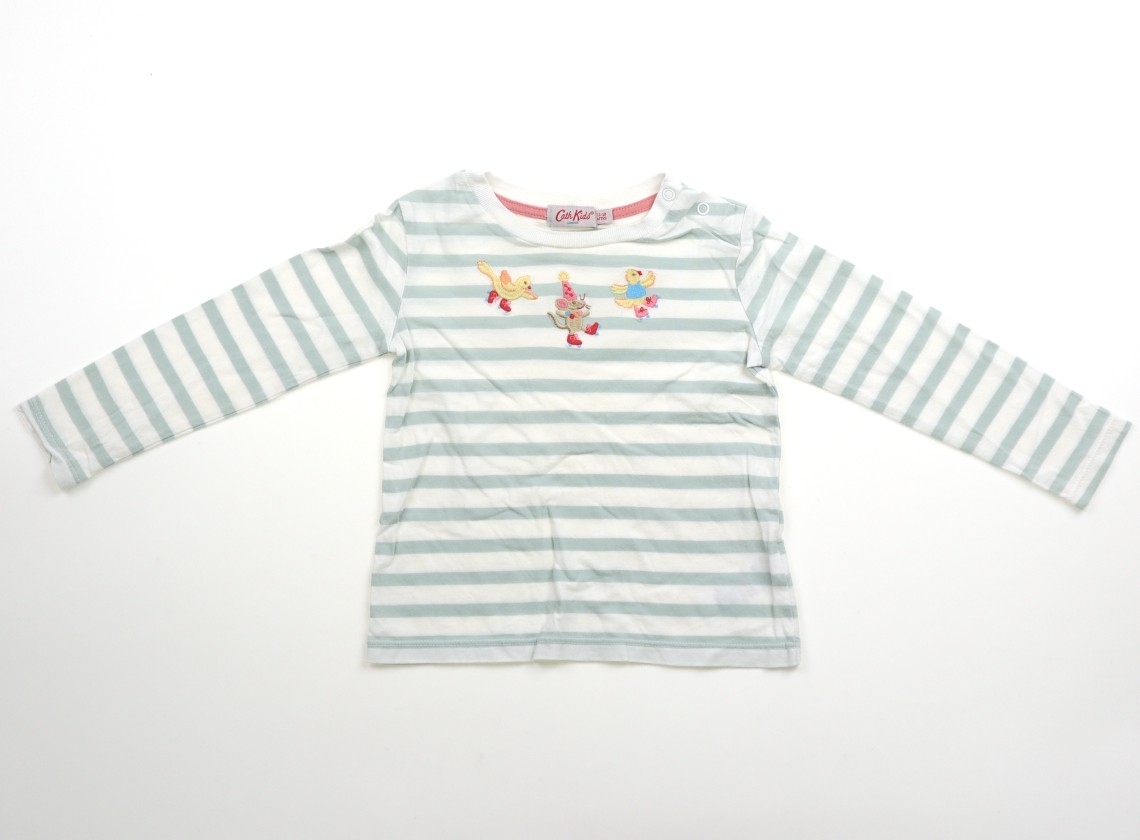 実際のサイズ表記は12-18M。少し毛羽立ちと首周りに薄っすら汚れはありますが、、目立った汚れはありません。
