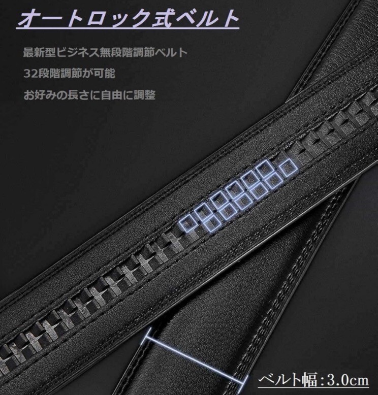 【スタイリッシュなオートロックベルト】バックルにベルトを通すだけで好きな位置で留める事が出来る、穴なしスライド式ベルトです。 本革ならではの質感を味わって頂けます。ビジネススタイルにもカジュアルスタイルにも合わせられるシンプルなデザイン! 服装の色とスタイルを選ばずに、スーツ、デニム、チノパンなどにも合わすことができますので フォーマル、カジュアルなどのシーンでご活用いただけます。