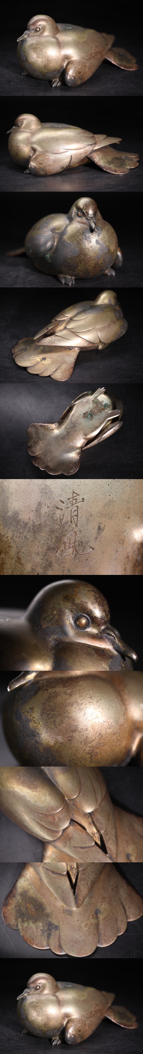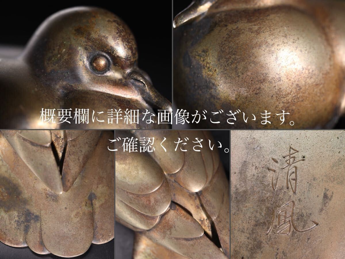| 金工師 岩瀬清鳳 作 銅製 鳥 置物 / 彫金 金工 煎茶飾 床置 .G2550 |