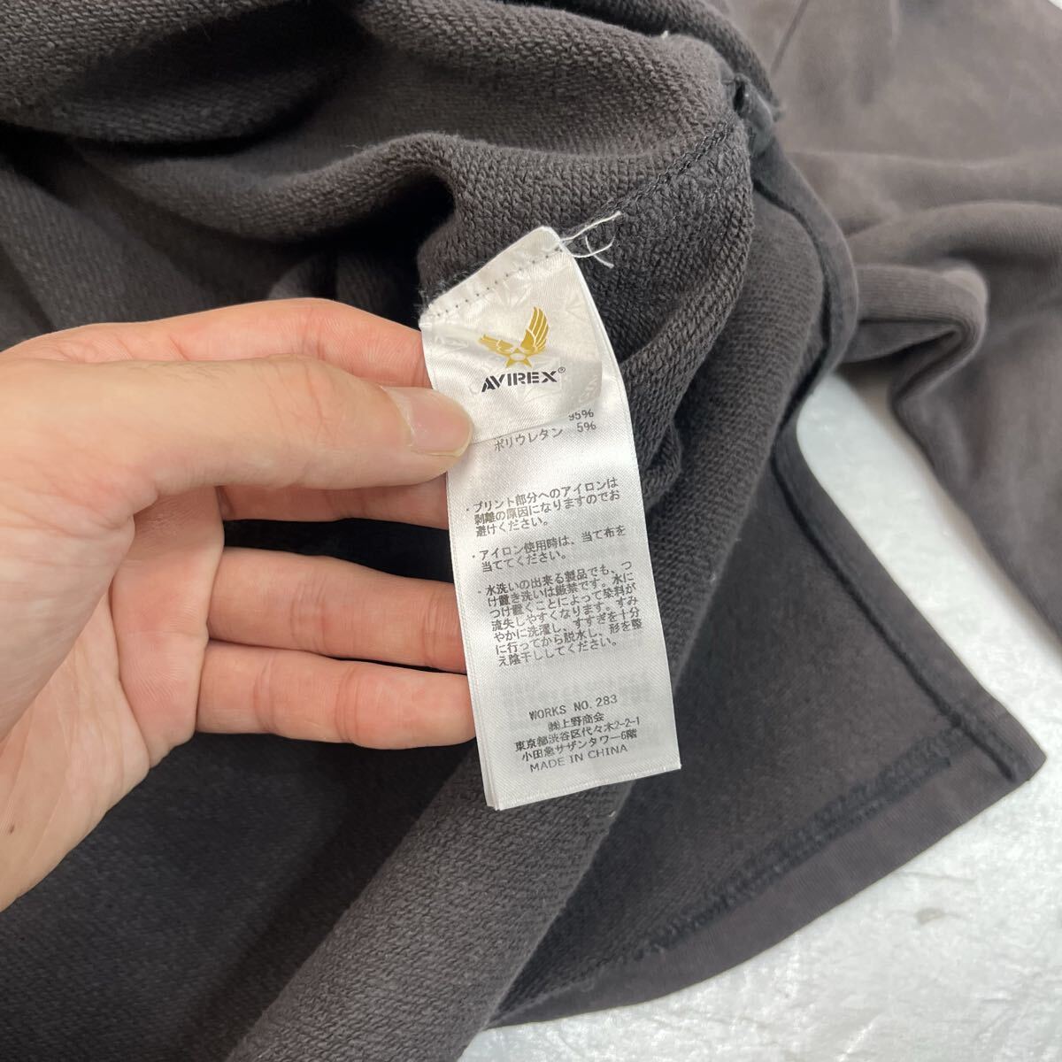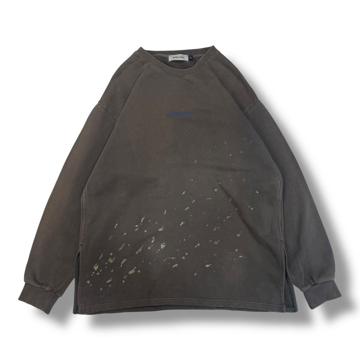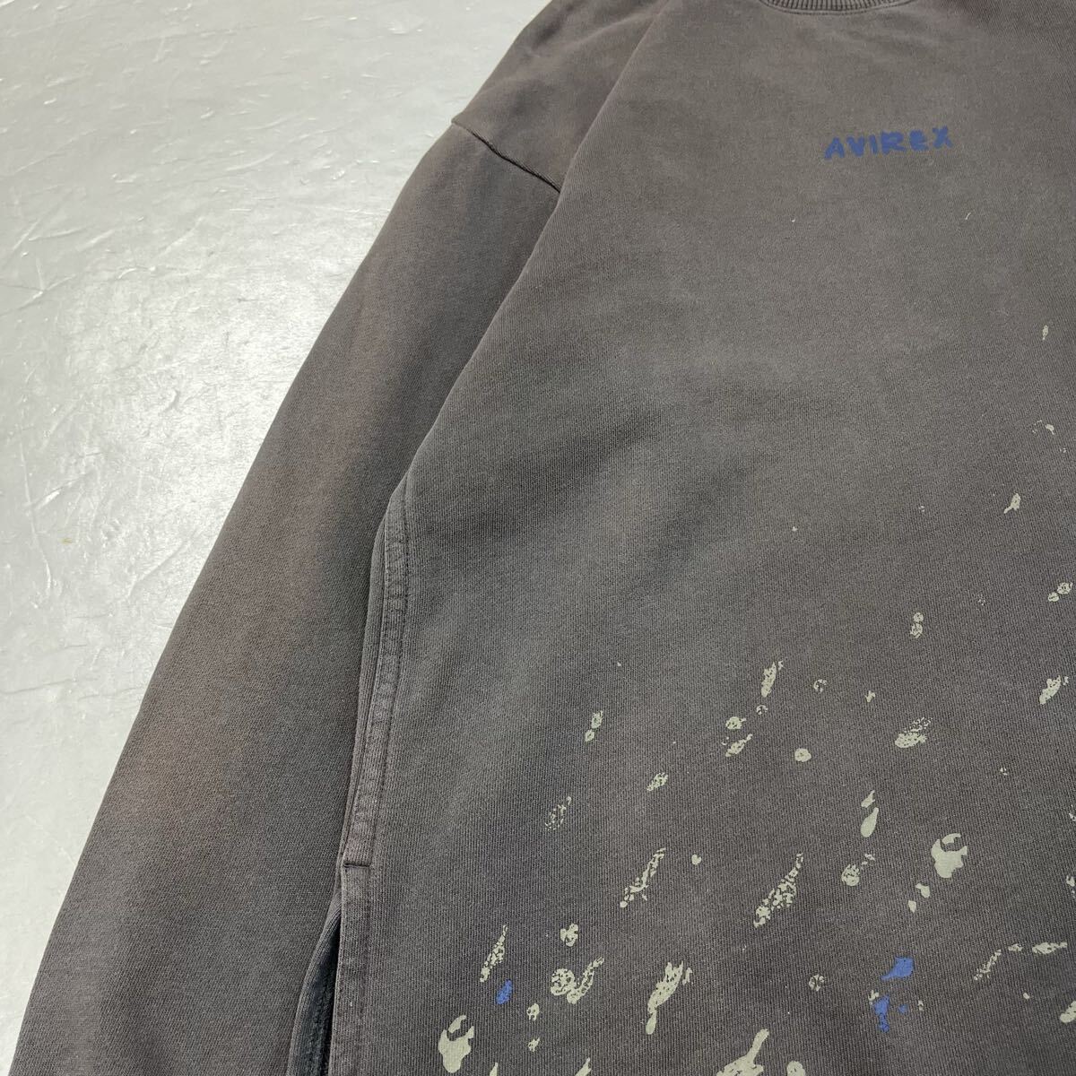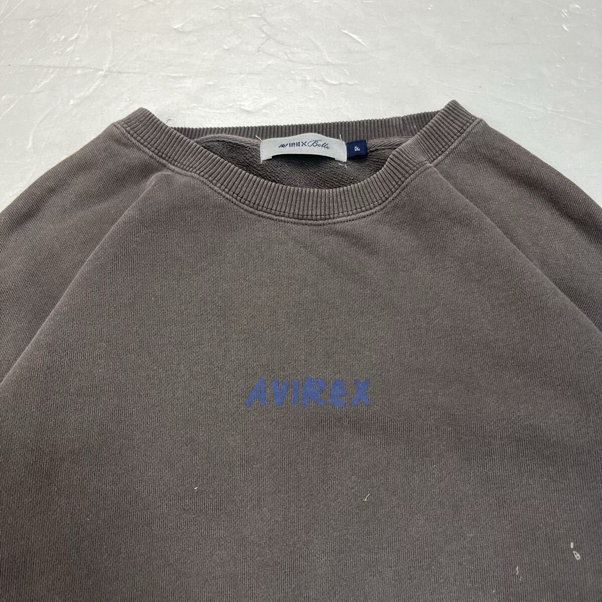 (TK0915) AVIREX Belle アビレックス ベル スウェット トレーナー グレー センター ロゴ プリント ペイント 定番 カジュアル フリーサイズ