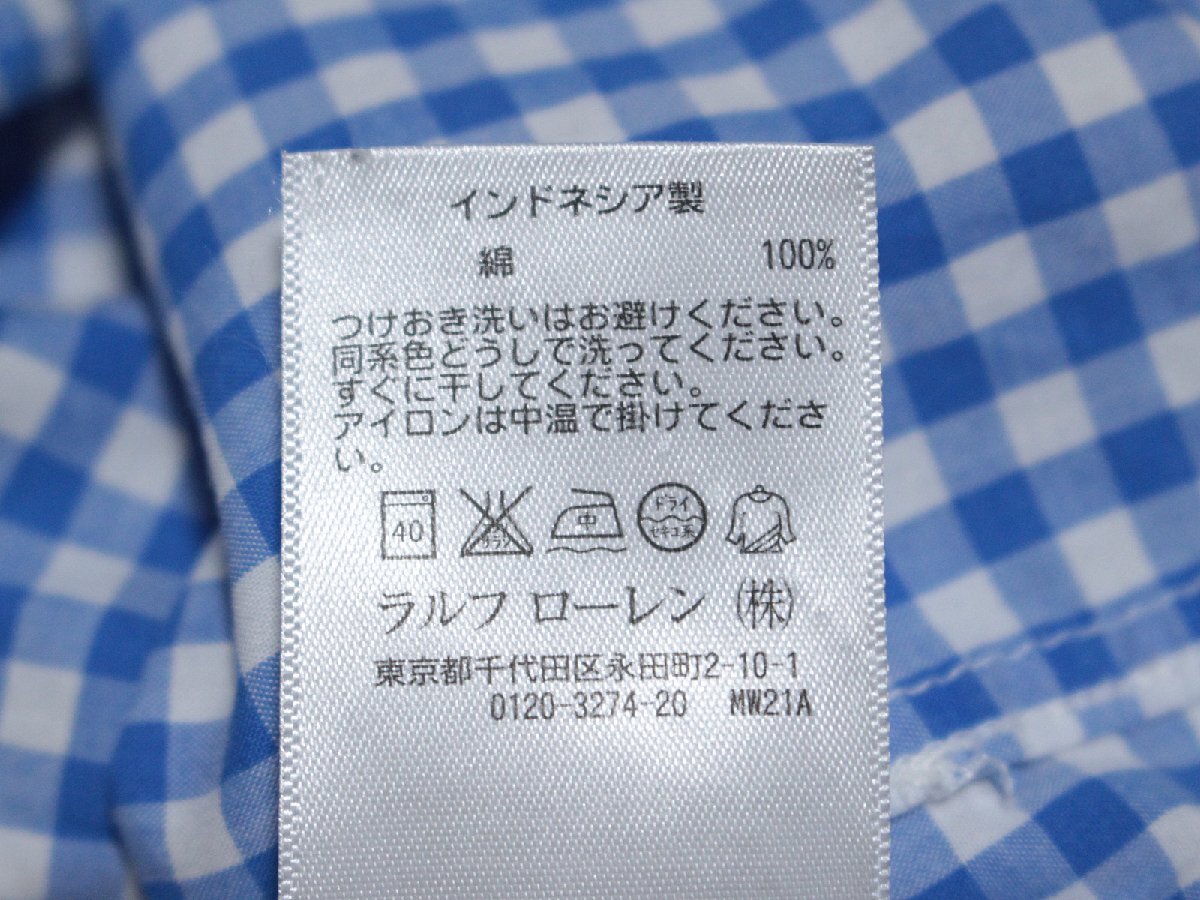 RALPH LAUREN ラルフローレン 長袖 ギンガムチェックシャツです。素材は綿100%になります。