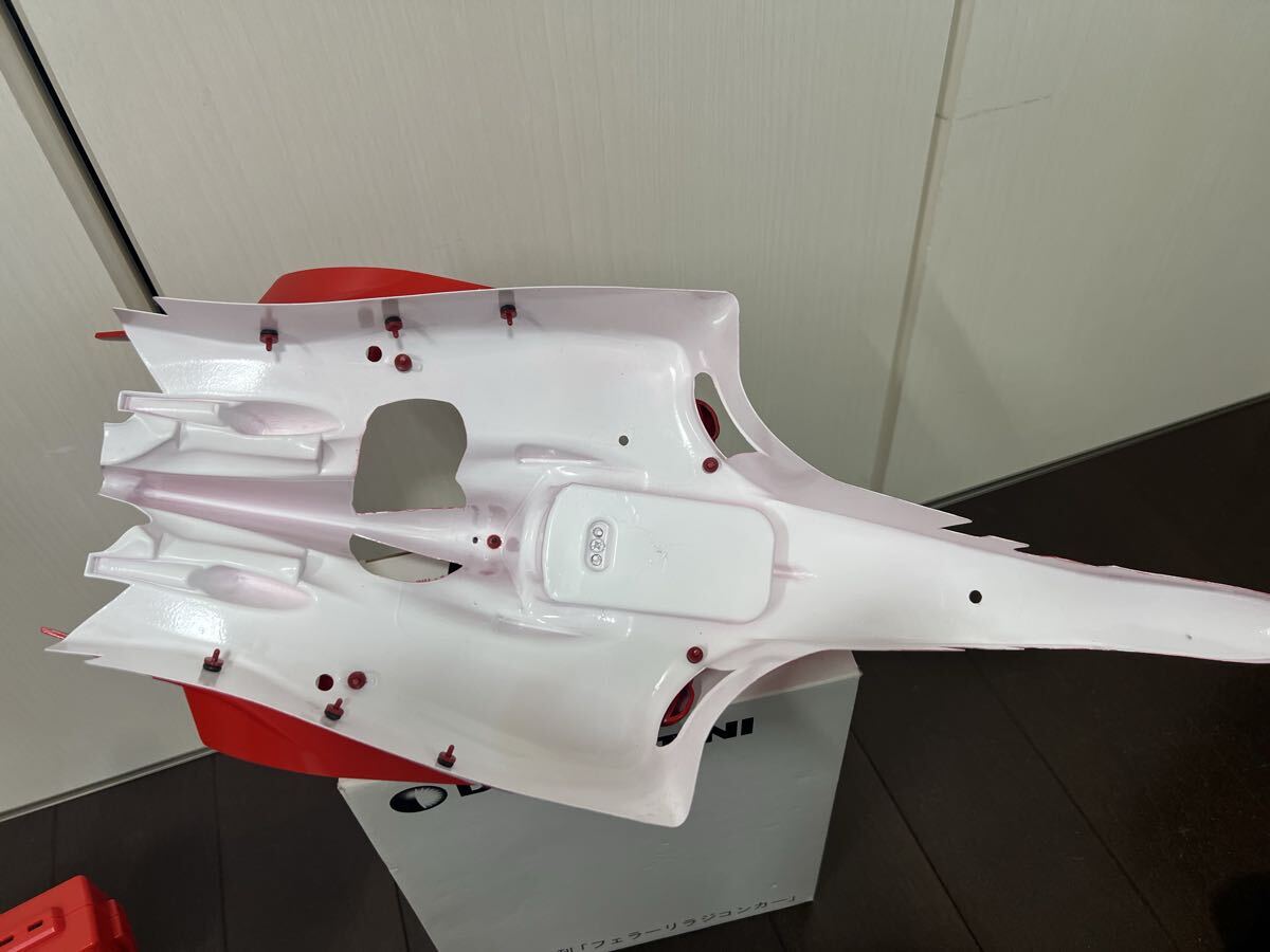 ボディは赤で塗装後、白で裏打ちしてあります。