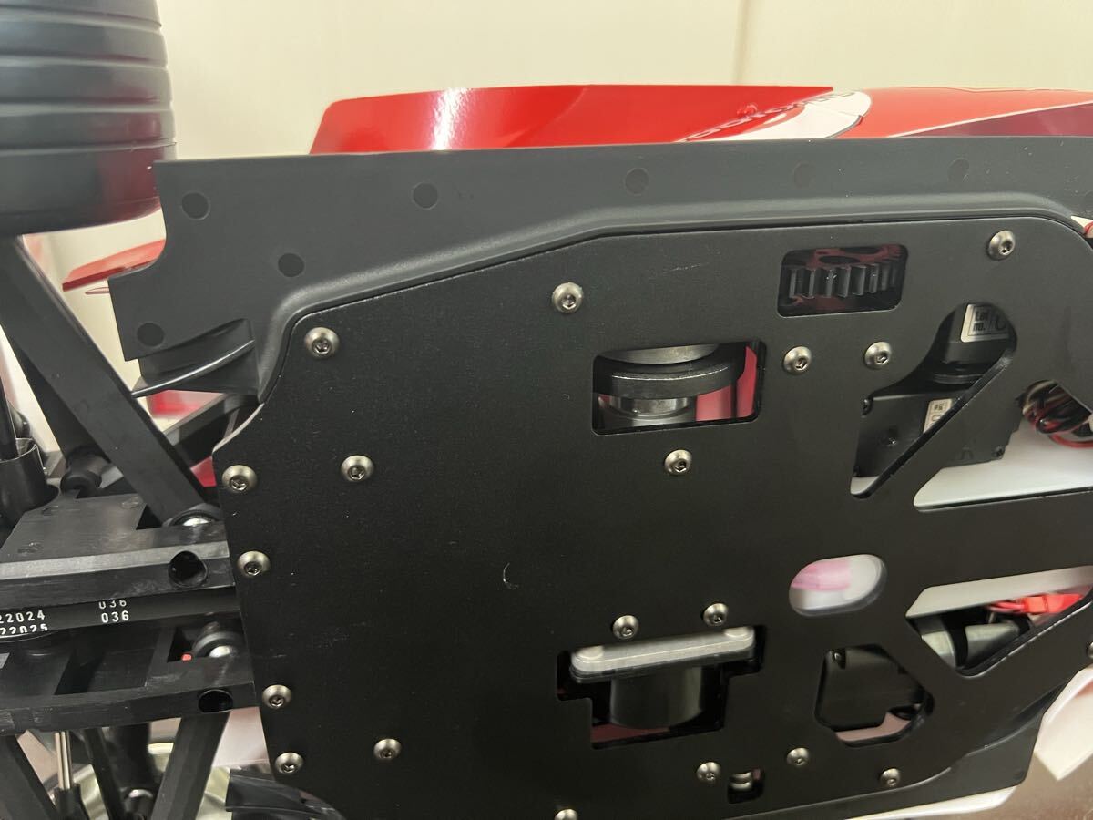 シャーシはタッピングビスをなるべく使わずに、ネジ穴をタップで掘ってからヘックスビスに交換して組み立てました!