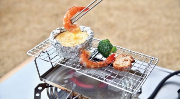 「炎」を「熱」に変換 特殊耐熱鋼メッシュを採用したミニグリルです。